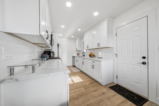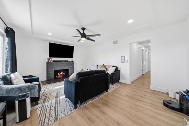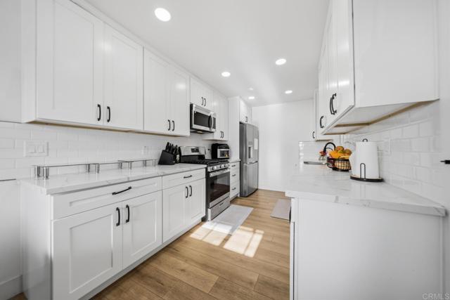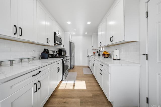 Welcome to this beautifully renovated 3-bedroom, 2-bathroom home offering the perfect blend of modern style and everyday comfort. Situated on an expansive 7,700 sq ft lot, this move-in ready property features a bright, open-concept layout designed for both entertaining and functional living. The fully upgraded kitchen is the heart of the home, showcasing sleek countertops, custom cabinetry, and stainless steel appliances—perfect for cooking and gathering. New flooring flows throughout, complementing the home’s clean, contemporary design. The spacious primary suite offers a private retreat with a tastefully updated en-suite bathroom, while two additional bedrooms provide flexibility for family, guests, or a home office. Both bathrooms have been thoughtfully remodeled with modern finishes. Enjoy added efficiency with an installed solar system and a water softener system, enhancing everyday comfort and potential energy savings. Step outside to a generously sized backyard with endless potential—ideal for entertaining, gardening, or even future expansion. An attached 2-car garage adds convenience and storage. Centrally located near schools, shopping, dining, and with easy access to Downtown San Diego, this home delivers on location, upgrades, and lifestyle. Don’t miss the opportunity to own this turnkey property!