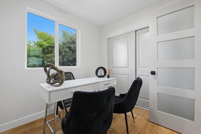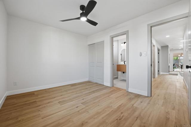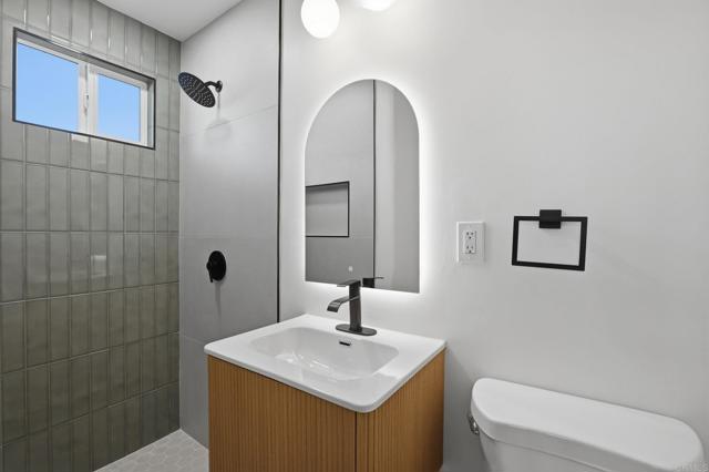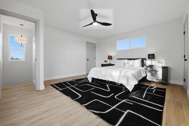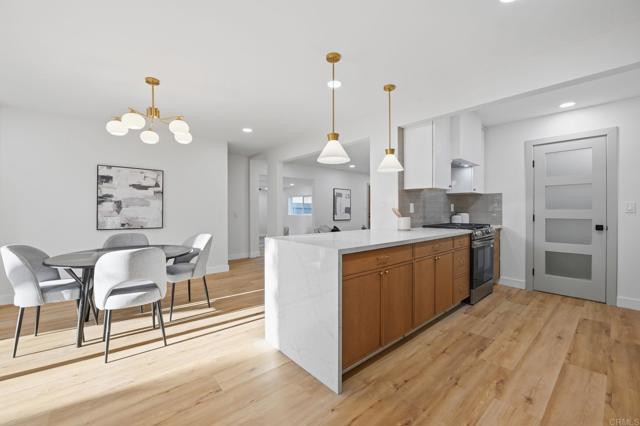 Beautifully reimagined from top to bottom, this fully remodeled home blends thoughtful design with effortless comfort in a prime location. Step through the door into a bright, open living space where new LVP flooring flows throughout and natural light fills every corner. The family room makes an immediate statement with a stunning floor-to-ceiling plaster fireplace, creating a sophisticated focal point. Just beyond, the dining area opens seamlessly to the backyard through a sliding glass door, offering the perfect balance of indoor-outdoor living. The fully remodeled kitchen is beautifully finished, overlooking the dining space and designed for connection. Quartz countertops, an elegant subway tile backsplash, new cabinetry, and brushed gold accents come together to create a clean, elevated aesthetic. The separate living room provides additional space to relax or entertain, with its own slider leading out to the backyard. Outside, a nicely landscaped yard and covered pergola create a private retreat, ideal for al fresco dining, weekend lounging, or hosting under the San Diego sun. Upstairs, the spacious primary suite serves as a peaceful escape, complete with a walk-in closet and a beautifully updated ensuite bathroom featuring a custom-tiled walk-in shower. On the main level, three additional bedrooms provide versatility for guests, family, or a dedicated home office. One bedroom features its own updated ensuite bath, while a third fully remodeled bathroom is conveniently located in the hallway. Every detail has been upgraded, including a new roof, retrofit windows, new sliding glass doors, a new HVAC system with a 4-ton condenser, tankless water heater, recessed lighting, and new ceiling fans throughout. Ideally situated in a central location, this home offers easy access to parks, schools, restaurants, shopping, and the natural beauty of San Clemente Canyon, bringing together modern living and everyday convenience in one exceptional offering.