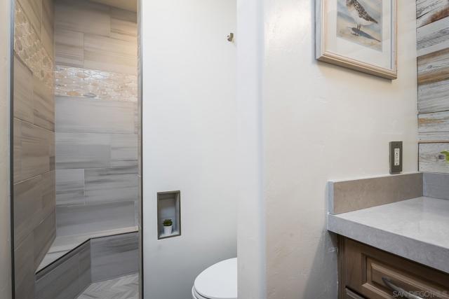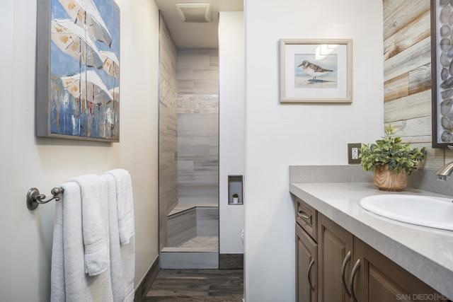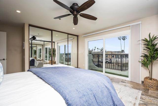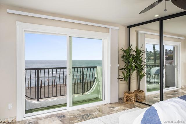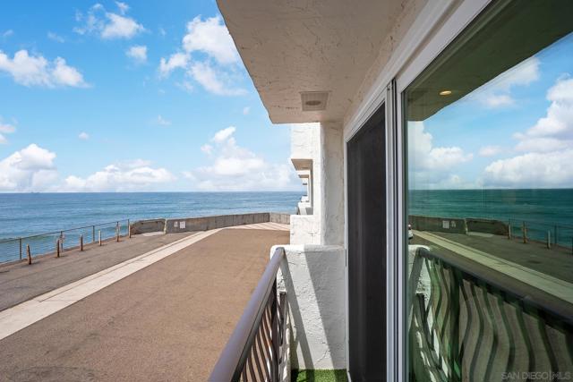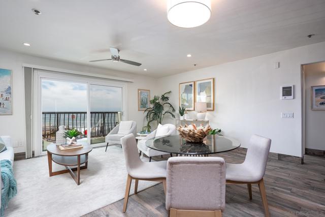Welcome to coastal living at its finest in this beautifully maintained 2-bedroom, 2-bathroom condo offering approximately 1,078 square feet, ideally located along the waterfront in Ocean Beach. Enjoy sweeping ocean views and refreshing sea breezes from your private balconies—perfect for morning coffee or relaxing at sunset. Inside, a bright and inviting open-concept layout showcases a beautifully updated kitchen with rich wood cabinetry, stainless steel appliances, and a stylish tile backsplash. The kitchen flows seamlessly into the dining and living areas, creating an ideal space for both everyday living and entertaining. A wall of mirrors enhances natural light and amplifies the sense of space, while modern lighting, ceiling fans, and warm-toned flooring complete the cohesive, move-in-ready design. The spacious primary suite offers a tranquil retreat with generous proportions, mirrored closet doors, and direct balcony access, along with a well-appointed en-suite bathroom featuring dual vanities, ample storage, and updated finishes. The versatile second bedroom features custom built-ins, a Murphy bed, and an updated en-suite bathroom, making it ideal for guests, a home office, or both. Additional highlights include abundant storage throughout, in-unit combo washer/dryer, and a secure building for added peace of mind. Located just steps from the sand and surf, and moments from the shops, dining, and vibrant energy of Newport Avenue, this home offers the ultimate blend of comfort, convenience, and coastal charm!