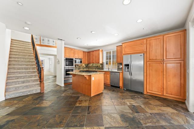 Former model home gracefully positioned in one of the community’s most sought-after enclaves, featuring a formal living room and a desirable main-floor bedroom with a full bath—ideal for guests or multi-generational living. The beautifully appointed kitchen serves as the heart of the home, complete with stainless steel appliances, granite countertops, and a center island that opens seamlessly to the family room with a cozy fireplace—perfectly blending style and functionality. Upstairs, a versatile loft provides additional living space, along with a convenient laundry room. The generously sized secondary bedrooms offer walk-in closets and are connected by a Jack-and-Jill bathroom, while an additional upstairs junior suite provides flexibility for guests or extended family. The spacious primary retreat features an ensuite bath with dual vanities, a soaking tub, separate shower, and a walk-in closet. Enjoy a private, low-maintenance backyard, ideal for relaxing or entertaining. Located in The Traditions at La Costa, a rare collection of just 12 homes nestled within the pristine La Costa neighborhood, this residence offers both exclusivity and convenience. Enjoy close proximity to beaches, major highways, shopping, dining, and entertainment, all within the award-winning San Dieguito Union High School District. Take in scenic views from the second floor and experience the peace and tranquility that define this exceptional luxury community.
