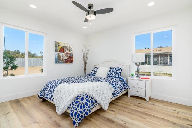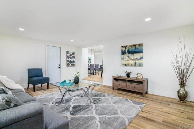 Beautifully remodeled home on massive lot! This San Diego home has been completely remodeled inside & out and boasts a huge open flat lot in the backyard with plenty of space to build your dream yard, expand, add a pool, ADU and so much more. The home features brand new landscaping in both front & back yards w/ new lawns, luxury vinyl plank wood flooring throughout, all quartz counters & white shaker cabinets and recessed lighting. The home's open floor plan includes both living & family rooms, mirrored closet doors in all bedrooms and a roomy kitchen w/ quartz counters, tile backsplash, an eat-in counter & stainless steel appliances including a Smart wi-fi operated voice-enabled oven to set your temperature & timer on the go! Don't miss this opportunity!