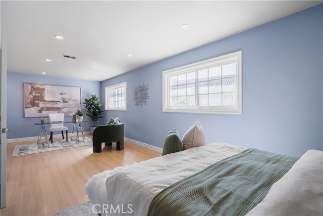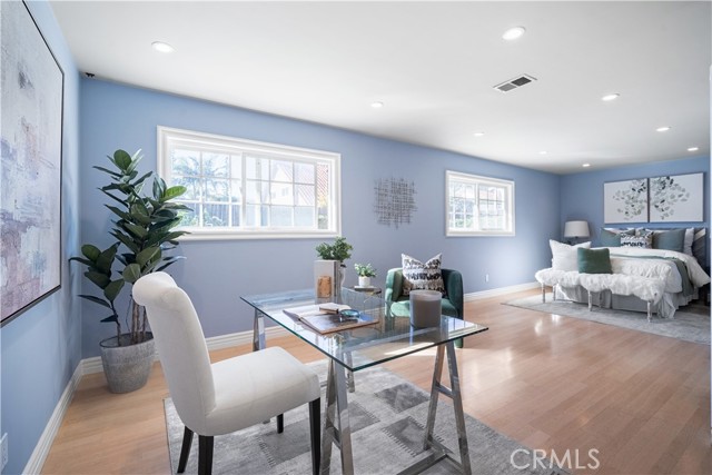 Beautiful single story home in top rated school district, conveniently located near parks, supermarkets, restaurants and much more. Features 4 bedrooms 2 bathrooms, two bedromms combaied to a huge bedromms with office. Large and open vaulted ceiling in living room and formal dining room. Open floor plan with tile and laminate flooring throughout. High end recessed lighting in every room. Custom kitchen cabinetry with granite counter top that opens to formal dining room. Remodeled marble master bath with Jacuzzi tub. Walk-in closet in master suite. Big secret area above the 2 Car garage. Large sliding door leads out to the backyard with all kinds of fruit trees.