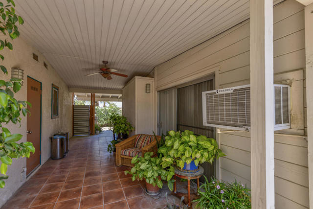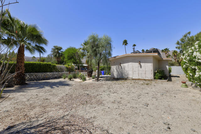 Mid-century style with class. Wonderfully upgraded. Set up as a main house and a guest house attached by a breezeway. Main house is 1 Bedroom, 1 Full Bath approximately 850 sq. ft. Guest house is also 1 bedroom, 1 Full Bath approximately 650 sq. ft. Classic stone wall on South and East sides of nearly 1/4 acre lot. Hand painted wrought iron gates. Main house has a large great room with fireplace, 1 bedroom, 1 full bath and a galley kitchen. Guest house has a living room, bedroom, large bathroom with a shower over a Roman tub and dual vanity, a small galley kitchen, and a large walk in closet. Bathrooms and kitchens of both units have beautiful granite counter tops, custom cherry wood cabinets and white subway tile walls. This charming home has 1' x 2' rectangular Italian porcelain tile. Neutral carpet in bedrooms. Recently painted plaster walls. Ceiling fans in all rooms except kitchens and baths. Owned (Financed) SOLAR over the garage is barely visible. Foam roof insulates and helps keep the house cool! Double pane windows also help save money and keep the home cool. Each unit has its own stackable washer and dryer. All appliances included. 2 hot water heaters, 2 ranges, 2 dishwashers, and 2 refrigerators. 1 year home warranty being offered. Great rental property or primary or secondary home. Live full-time in one unit and rent out the other unit, short term, seasonally or long term. Yes, short term rentals are allowed as long as you live in one of the units fulltime.Recently re-landscaped. Very large side yard is the perfect place to add your own pool and spa or potentially build an ADU (Check with the city). Wonderful mountain and some city light views. Attached spacious 2 car garage with a plethora of shelves for storage. Separate storage room attached to the garage.The Cathedral City Cove is a highly desirable friendly and diverse neighborhood. Most homeowners know their neighbors. It's centrally located near downtown Cathedral City with its theaters, restaurants and the Agua Caliente Casino.Sewers were installed and the streets were repaved around 2007. 30 year sewer assessment ends in 2035. The assessment for this property is approximately $1,588 per year. Paid with your property taxes. You'll be proud to call this house home!