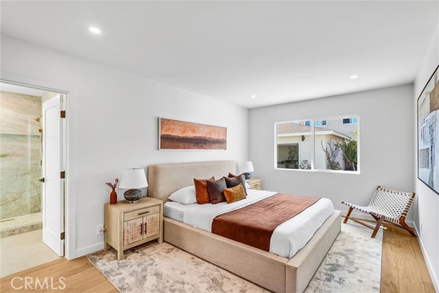 This spacious 3-bedroom, 2-bath home sits on a wide residential street in Leimert Park and blends classic character with modern upgrades. The large, light-filled living room features a brick fireplace and oversized windows that bring in an abundance of natural light. The home has been extensively updated with white-oak–stained hardwood floors, designer recessed lighting, dual-pane windows, and fresh interior paint. The chef’s kitchen is a standout, offering brand-new white oak cabinetry, quartz countertops, a 6-burner range with 36-inch hood, pot filler, cabinet-depth refrigerator, and dishwasher. The primary suite includes a walk-in closet plus an additional wardrobe closet, along with a beautifully finished en-suite bathroom featuring Taj Mahal wall tile, brushed-gold fixtures, and an oversized walk-in shower. The hall bathroom offers slim-shaker cabinetry, a single sink with makeup vanity, and a bathtub surrounded by Bedrosian tile. A detached finished two-car garage sits behind the gated driveway and includes an EV charging port. With smooth drywall, recessed lighting, and clean concrete flooring, the garage easily doubles as a flex space so it’s perfect for a home gym, creative studio, lounge area, or game room. It’s the ideal extension of the home for buyers seeking extra usable square footage without compromising parking or storage. The electrical panel has been fully upgraded. The grounds are landscaped with black pine, sago palms, a mature persimmon tree, and two beautiful plumeria trees. Located just 7 minutes from USC, this home offers exceptional convenience to Exposition Park, the Coliseum, BMO Stadium, and the Metro E Line. Every detail of this home delivers sophistication, comfort, and effortless indoor-outdoor living—making 3811 South Norton Avenue a true lifestyle property in the heart of Leimert Park.