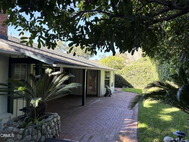 This classic 1953 mid-century ranch-style home is tucked peacefully behind the mature oleanders on North Altadena Drive in beautiful Northeast Pasadena. Offering 2,235 square feet of living space on an expansive 8,799-square-foot lot, the home blends timeless charm with a warm, and inviting layout. Inside, the entry opens onto the living room with large sliding glass doors that leads to the covered patio, a handsome brick fireplace, and an impressive built-in wood bookcase. The formal dining room features oversized panels of wainscotting and is open to the family room with a built-in entertainment armoire. The bright kitchen offers warm, honey-colored cabinets and an eating area that looks onto the rear yard. The two spacious bedrooms offers en-suite bathrooms, with an additional bathroom located off the main hall. A dedicated office space off the kitchen, inside laundry, two-car attached garage, and central air and heat are included in this lovely home. The private rear yard with a raised deck provides a peaceful setting surrounded by mature landscaping. Sited among tree-lined streets, well-kept properties, and a welcoming community feel, residents enjoy proximity to local parks, hiking trails, dining, and all that Pasadena has to offer, making this home an ideal choice for those seeking a classic California ranch with comfort, privacy, and character.