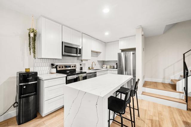 **PRICE TO SELL** Step into refined mid-century modern living in the highly desirable Paradise Hills community. This beautifully reimagined townhome has been thoughtfully renovated from top to bottom, blending timeless design with today’s modern comforts. The spacious open-concept layout is anchored by a stunning designer kitchen, featuring a custom Carrara white quartz island, sleek cabinetry, and stainless steel appliances—perfect for both everyday living and entertaining. Throughout the home, high-end engineered wood flooring creates a seamless, elegant feel, while custom window blinds, distinctive statement light fixtures, Italian matte porcelain finishes, and LED recessed lighting add style and sophistication to every space. This turnkey residence offers peace of mind with a newer furnace, dual pane windows, WITH OWN DRIVEWAY, ONE CAR GARAGE ATTACHED, LAUNDRY AREA and meticulous attention to detail throughout. Ideally located near shopping, dining, and major commuter routes, the home also provides access to desirable community amenities including a sparkling pool, private park, and playground. This is a rare opportunity to own a move-in-ready, designer-upgraded home in one of Paradise Hills’ most sought-after neighborhoods. Just bring your furniture and move right in. Location -Paradise Hills | Turnkey Conditon.