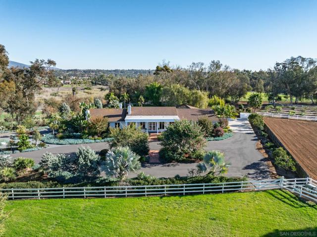 An exceptional Covenant estate on the desirable West Side of Rancho Santa Fe, offering 5.22 private, all-flat usable acres and premier equestrian amenities. Beyond the gated entry and long private driveway, this renovated single-story 4,473 sq ft residence features 5 bedrooms, 3.5 baths, a formal living room with fireplace, formal dining room, office/bonus room, and a spacious primary suite with fireplace, dual dressing rooms, spa bath, and gym. The chef’s kitchen with top-tier appliances opens to a large great room with full bar, fireplace, and a wall of glass leading to an outdoor loggia, saltwater pool with cover, spa, lounging areas, and beautiful mountain views. Equestrian facilities include a 6-stall breezeway barn with caretaker’s apartment (bedroom, bath, full kitchen, separate laundry room, half bath), a Grand Prix jumping arena, on-site trail, grazing areas, turnouts, pastures, and access to the Covenant trail system. A separate 1,774 sq ft guest house above the barn offers 2 bedrooms, 2 full baths, a full chef’s kitchen, living room, and abundant storage. Additional highlights: white oak flooring and custom wood details, marble and stone finishes, brick accents, private well for irrigation, high-speed fiber, and a covered front porch. A rare and special Covenant legacy property offering outstanding lifestyle, privacy, and usability in one of Rancho Santa Fe’s most sought-after locations. An unparalleled offering on the desirable West Side of Rancho Santa Fe’s coveted Covenant, nestled among some of the region’s most iconic estates. This is one of Southern California’s premier equestrian and custom-designed properties—blending timeless Southern California artistry with state-of-the-art amenities across 5.22 rare, private, and entirely flat usable acres. Beyond the gates, lush and exotic landscaping sets the stage for a world-class equestrian haven. The 6-stall breezeway-style barn includes a caretaker’s apartment with bedroom, full bath, full kitchen, separate laundry room, and an additional half bath. The property also offers a Grand Prix jumping arena, on-site trail, grazing areas, turnouts, pastures, and access to the Covenant’s extensive trail system. A long private driveway leads to a gated entry and circular motor court, welcoming you to the recently renovated 4,473 sq ft single-story main residence featuring 5 luxurious bedrooms and 3.5 baths. Inside, enjoy a formal living room with fireplace, a formal dining room, and an office/bonus room. The primary suite showcases a corner brick fireplace, private outdoor patio, dual dressing rooms, a spacious spa bath, and a gym. The chef’s kitchen—with top-tier appliances—flows seamlessly into a grand great room complete with full service bar, fireplace, and an expansive wall of glass that opens to an outdoor living/dining loggia. Outside, a saltwater pool with cover, spa, lounging areas, and glorious mountain views create a resort-style retreat enhanced by refreshing coastal breezes. The separate 1,774 sq ft guest house, located above the barn, offers two bedrooms, two full baths, a full chef’s kitchen, living room, and abundant storage. Every inch of this estate exudes warmth and refined craftsmanship—white oak flooring, rich wood detailing, marble slabs, stonework, and curated tile accents. Additional highlights include a private well for irrigation, high-speed fiber internet, brick detailing, and a charming front entry porch ideal for morning coffee or evening relaxation. A true legacy estate, this property is more than a home—it is a statement of passion, vision, and exceptional lifestyle. A rare Covenant offering designed to be cherished for generations. Experience life and luxury without compromise.