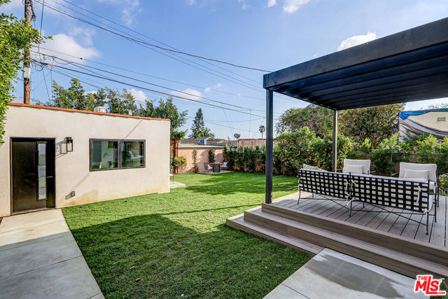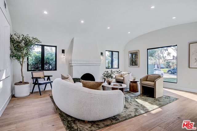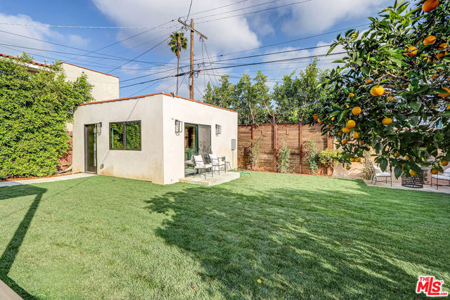 Extensively reimagined single-family residence with detached ADU, offering a flexible layout and cohesive design throughout. The home blends the feel of new construction with the character of an established neighborhood, featuring updated systems and refined finishes that create an easy transition for its next owner.A welcoming living room with fireplace opens into the main living areas, while a front enclosed patio adds additional usable space. Interior finishes include wood floors throughout, Milgard windows, pre-wiring for speakers, Ring doorbell, and security cameras.The kitchen is designed for everyday use and gathering, with a farmhouse aesthetic, breakfast bar, two sinks, six-burner cooktop with pot filler, farmhouse sink, Thermador double convection ovens with remote diagnostics and voice control, microwave, and Thermador French-door refrigerator.A dedicated laundry room includes a sink, built-in cabinetry, and space for a stackable washer/dryer.The primary suite offers generous proportions, a walk-in closet, an oversized shower with rain head, standalone soaking tub, and double vanity with seated vanity area.Outdoor spaces include rear deck suitable for dining or relaxing, herb garden, orange trees and full grass yard.The detached ADU provides additional flexibility with a custom walk-in closet, sliding doors with side patio access, Frigidaire appliances, and a bathroom with tub/shower combination.Offered as-is.