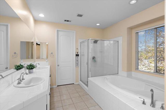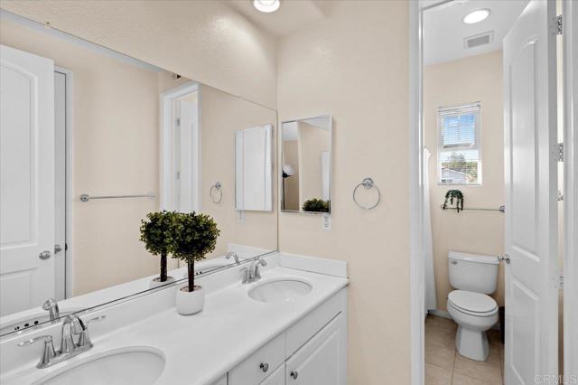 Welcome to the highly sought-after community of Lake Rancho Viejo! This move-in ready, light-filled home is on a premium corner lot with low HOA fees and peaceful views to the East. A recently painted exterior welcomes you inside to an inviting open concept living room and kitchen, designed for everyday comfort and effortless entertaining. The main level features tile flooring, abundant natural light, and a living room enhanced by a stylish shiplap feature wall. The kitchen is both functional and spacious, showcasing granite countertops, stainless steel appliances, and a walk-in pantry for added storage and convenience. Upstairs, you’ll find laminate flooring throughout, a dedicated laundry room with sink, and a large walk-in linen closet. The well designed floor plan includes a dedicated study built-in desk along with secondary bedrooms connected by a Jack-and-Jill bathroom. The primary suite retreat offers a true escape, complete with a double-sink vanity, soaking tub, walk-in shower, private water closet, and a spacious walk-in closet. Additional highlights include a two car garage, paid-off solar, a fully fenced backyard perfect for relaxing or entertaining, and access to the wonderful amenities Lake Rancho Viejo is known for scenic walking trails, tot lots, and proximity to I-15, Hwy 76, and the Bonsall School District. This home offers comfort, efficiency, and lifestyle in a desirable community.