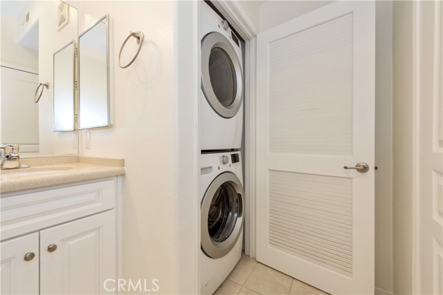 Affordable living in Irvine’s exclusive world class resort style Watermarke residents community. This is a 1 bedroom/1bathroom unit with a spacious den and they are all on one level. 2 assigned parking spaces near the unit. Open flow out floor plan with kitchen overlooking dining and living room. French doors off the den and step out onto large patio and overlooking beautiful garden below. Remodeled bathroom in 2016 with a step in large shower unit which is great for seniors. Upgraded finishes throughout include: tile flooring in bathroom and kitchen, New carpet, New paint, Thermador dishwasher, Bosch microwave, Drinking water system/filters, full height kitchen backsplash, Corian countertops, double vanity sink in the bathroom, crown moldings, Walk-in closet, stackable washer/dryer. HOA amenities include: concierge service, clubhouse with billiard room/library/movie theatre/computer room, gym, junior Olympic pool plus 2 additional pool/spa, Tennis court, basketball court, tot lot, gardens and gated community. It’s conveniently located near the Mother’s market shopping mall and 405 freeway, makes it just few mn. driving to the John Wayne Airport and South Coast Plaza.