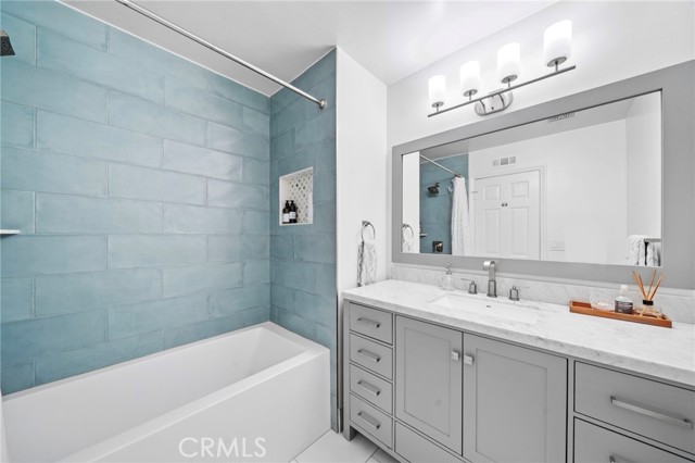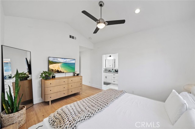 Welcome to this beautifully expanded and reimagined Helmsman Model in the highly desirable Park Huntington neighborhood of South Huntington Beach. Situated on a quiet interior street, this 3-bedroom, 3-bathroom home offers nearly 2,400 square feet of thoughtfully designed living space. A gated and landscaped front yard with a large patio creates a welcoming first impression. Enter through a custom front door into a formal entry highlighted by dramatic vaulted, beamed ceilings and warm hardwood floors throughout the main living areas. The formal living and dining rooms flow seamlessly into a chef’s kitchen featuring a large center island, Sub-Zero refrigeration, double ovens, four-burner gas cooktop, stone countertops, designer tile backsplash, and custom lighting. The kitchen overlooks an oversized breakfast nook and the beautifully manicured backyard. Just below, the cozy family room offers a gas fireplace, wet bar, and adjacent powder bath—ideal for everyday living and entertaining. Upstairs, the expanded and fully remodeled primary suite is a true retreat with a spacious walk-in closet, dual-sink vanity with waterfall marble countertop, and an oversized walk-in shower with dual shower heads. Two additional bedrooms, a full bathroom with tub, and a dedicated laundry room complete the upper level. Additional highlights include newer air conditioning, an electric vehicle charger, and a private backyard with mature fruit trees—perfect for outdoor entertaining. Located within award-winning school districts and just a short walk to Whole Foods, Sprouts, Target, and popular dining. Enjoy easy access to Pacific City, downtown Huntington Beach, and the beach, just a short bike ride away.