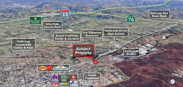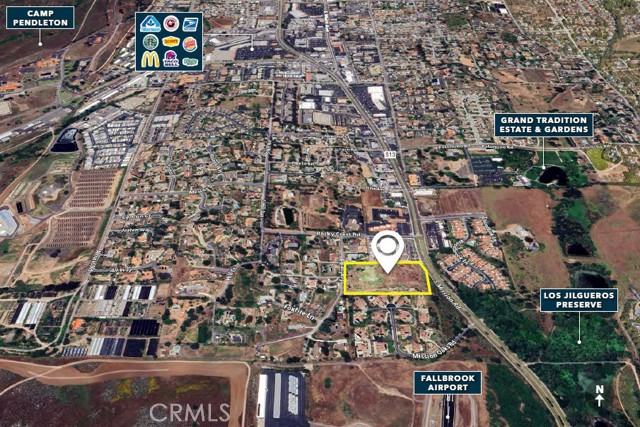 Auction! Residential development opportunity in Fallbrook, CA. This 5.40 acre property offers a superior location on Mission Road, close to top-rated schools, retail centers and Camp Pendleton. Zoned Rural Residential (RR) potential for 13 lots and 2 affordable with Density Bonus (AB 1287/SB9) verify with San Diego County. Home resale values over $1,300,000 in the immediate vicinity. Seller will consider contingencies with your offer.