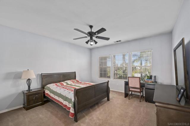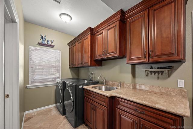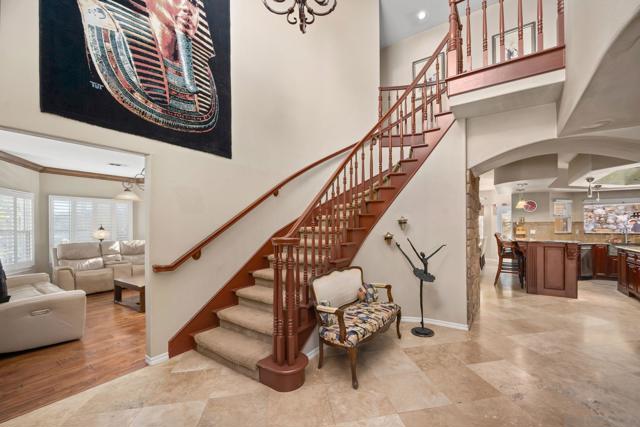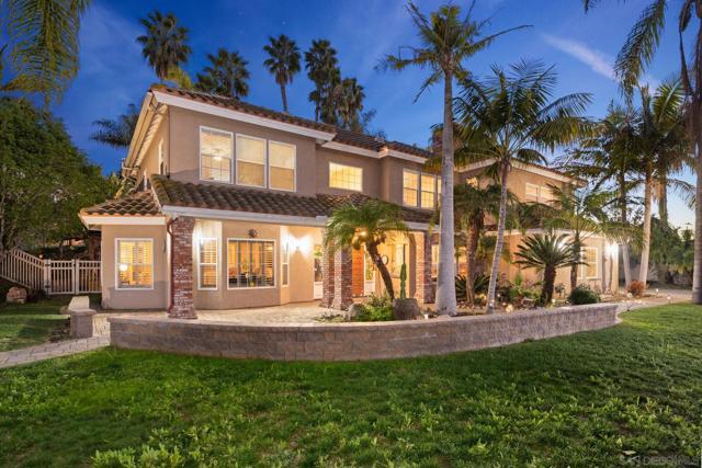Tucked away on a private cul-de-sac, this extraordinary 3,943 sq. ft. custom estate in Vista captures the essence of luxury Southern California living. Set on over half an acre with room for an ADU and elevated panoramic views, the home’s refined design features travertine and hardwood flooring, a chef’s kitchen with Wolf range and hood, a whole-stone granite sink, and rich granite slab counters. Entertain in style with a dedicated wine room, elegant fireplaces, and a private music studio with full bath above the garage(could be another huge bedroom). The expansive primary suite offers a walk-in closet and peaceful garden views. Outdoors, enjoy a resort-inspired setting with a sparkling pool and spa, two cascading waterfalls, fire pit, koi pond with bridge, and lush fruit trees including apple, lemon, lime, tangerine, blueberry, and grape. Pig pit and garden areas with bird aviary top the lot off. Over 800 sqft. of covered space hosts a full granite outdoor kitchen, grill, ovens, bar seating, and lounge areas amid stunning landscaped grounds.