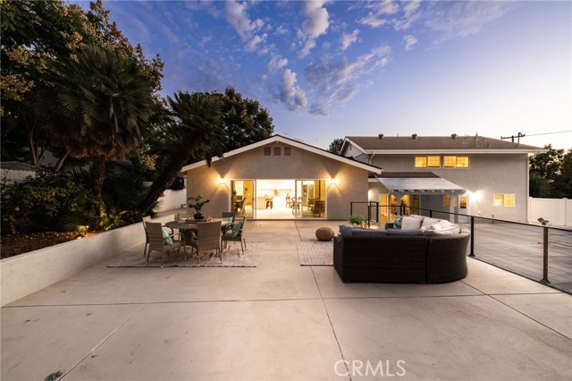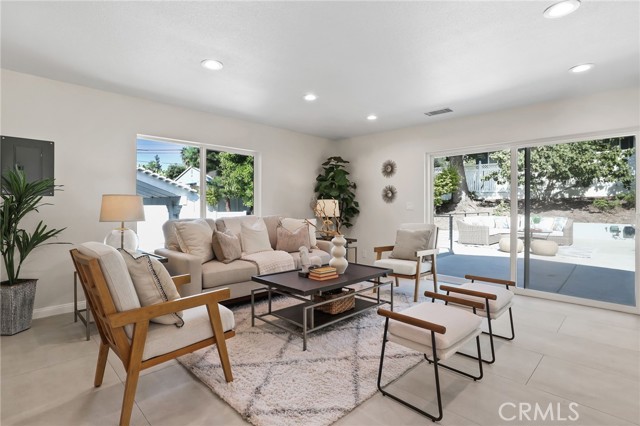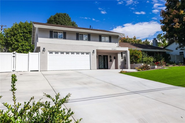 Welcome to this beautifully remodeled home where timeless architecture meets contemporary elegance. Set on a spacious half-acre corner lot, this property not only offers incredible privacy and curb appeal but also presents a fantastic opportunity for an ADU, guest house, or future expansion. Step through the custom wrought-iron double doors into a bright, airy interior featuring wide luxury vinyl plank flooring, designer finishes, and modern railings that enhance the open layout. The split-level design offers multiple living spaces filled with natural light, perfect for both everyday living and entertaining. The chef-inspired kitchen showcases white shaker cabinetry, quartz countertops, stainless-steel appliances, and an expansive island that flows seamlessly into the dining and family areas. Just off the main living area, a dedicated office with sliding glass doors opens to the patio, ideal for working from home. A guest bedroom and full bath downstairs provide comfort and flexibility for visiting family or multi-generational living. Upstairs, the primary suite is a tranquil retreat featuring a spacious layout and a luxurious ensuite bath with dual vanities and a freestanding clawfoot tub. Three additional guest bedrooms and another full bath complete the upper level. The backyard is an entertainer’s dream, expansive, private, and low-maintenance, with multiple zones for outdoor dining, lounging, and play. There’s also ample parking space for an RV, boat, or additional vehicles, further enhancing the property’s versatility. Located in a serene, desirable neighborhood, this home combines style, space, and exceptional potential, all move-in ready and waiting for its next chapter.