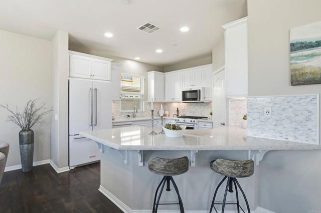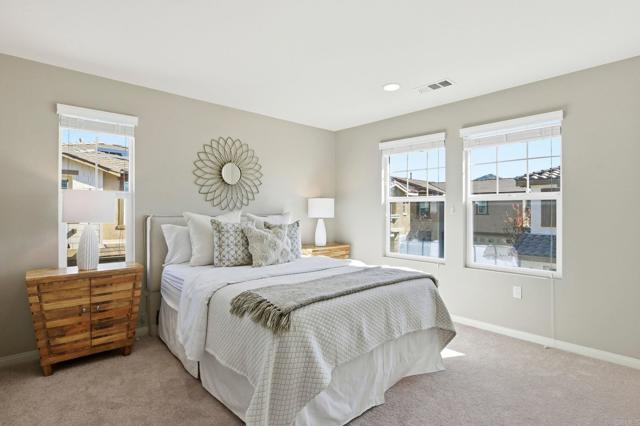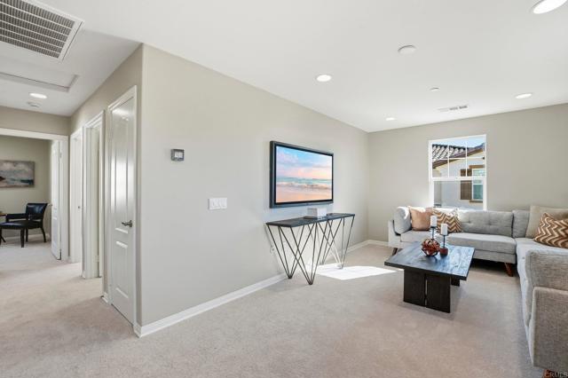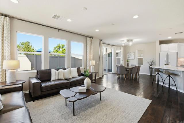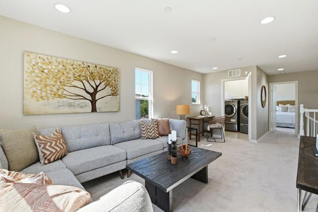 Welcome home to the perfect blend of modern luxury and design in Lakeside's highly desirable Ridgeline community.  This 4-bedroom, 3 bath home with a spacious loft sits on a premium lot and offers the largest floor plan in the neighborhood including a downstairs bedroom.  Featuring with high-end elements, including wide luxury vinyl plank flooring, a gourmet kitchen with Quartzite countertops, tile backsplash and dining island with new carpet and paint throughout the home.  The open layout is perfect for everyday living and entertaining with plenty of room and storage of all your belongings including cabinets and racks in the garage.  Relax and unwind in the resort like primary suite with a walk-in shower, soaking tub, dual sinks and walk in closet.  Enjoy energy efficiency with 20 owned solar panels and a Tesla Powerwall, plus modern comforts including a tankless water heater, whole-house water softener and filtration system. Conveniently located near the community park and guest parking, this home blends space, sustainability, and an ideal location with close proximity to dining, shopping, entertainment, schools, freeway access and so much more. Come enjoy everything that 13310 Cuyamaca Vista has to offer!