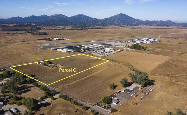 RE/MAX Direct is exclusively offering Parcel C, one of two (2) legal industrial parcels being brought to market, representing a rare opportunity to acquire ±8.27 acres of M54 General Impact Industrial–zoned land—one of the most scarce and highly sought-after industrial zoning designations in Southern California, notably permitting outdoor storage by right. Strategically located at the hard corner of Montecito Road and Montecito Way and directly across the street from Ramona Airport (KRNM), the property offers exceptional frontage, convenient access, and proximity to major state highways SR 67 (Main Street) and SR 78. The property is serviced by multiple water meters, an on-site water well, and electric service to the parcel. Improvements include a ±1,118 SF single-family residence, allowing for interim income, on-site management, or future redevelopment consistent with industrial use. Parcel C is being marketed individually and in conjunction with adjacent Parcel D (±7.66 acres, same zoning), offering buyers the flexibility to acquire one or both legal parcels for expanded scale, circulation, or phased development. Ideal uses include manufacturing, industrial operations, outdoor storage, fleet storage, recycling, self-storage, packing, and processing, subject to County approvals.