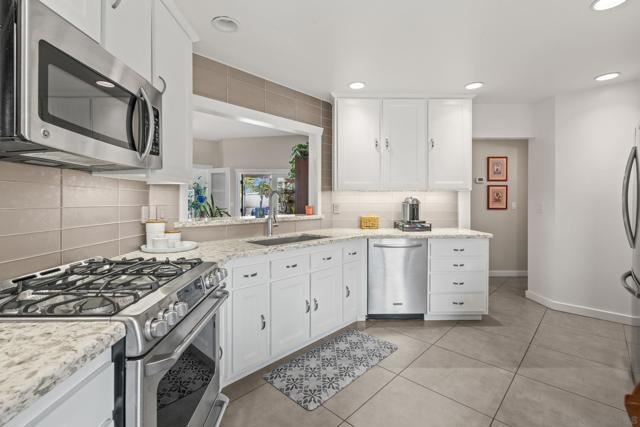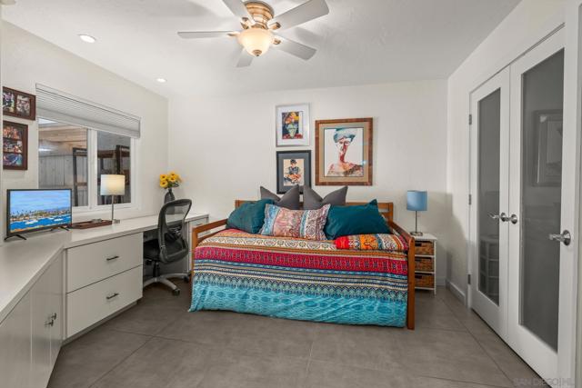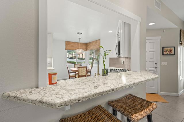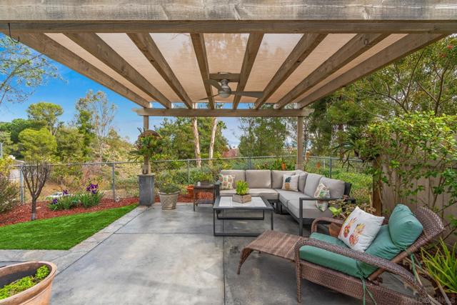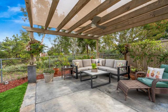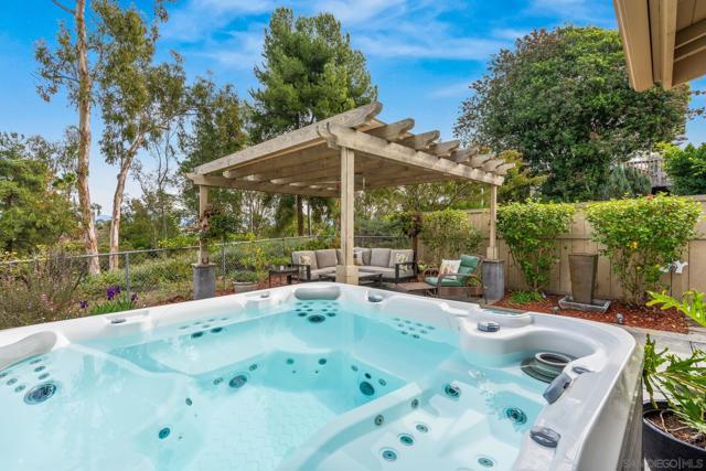 Gorgeous single story home in the Cottages with private and peaceful yard. This home is chalk full of upgrades including a chef inspired kitchen with quartz countertops, stainless steel appliances and beautiful cabinetry. Both bathrooms have been remodeled with designer tiled shower stalls, vanities and sinks. Custom cabinetry by CA Closets in both bedroom closets and the garage. This home has one of the largest exclusive and private yards in the complex and includes a custom made pergola, lighting, speakers, hot tub and more all with serene views. Just minutes to Mission Trails Park, Lake Murray and steps to Cowles Mountain. This former model home includes Milgard dual pane windows throughout, indoor & outdoor speakers (app controllable), a whole house water filtration system, tankless water heater and central A/C supplemented by beautiful ceiling fans. All appliances convey. Beautiful community pool and spa as well as your own private spa. The Cottages is known as a premier community in San Carlos. The single story units are rarely available. Don't miss out on this opportunity! PLEASE NOTE: All information is deemed to be reliable, but not guaranteed. It is the responsibility of the buyer and their agent to confirm all information and to satisfy all concerns prior to removal of all contingencies and close of escrow. It is also the responsibility of the buyer and their agent to verify all room sizes, lot size and dimensions. The existence of any permits is unknown and it is the responsibility of the buyer and their agent to confirm them or lack thereof prior to the removal of all contingencies and close of escrow.