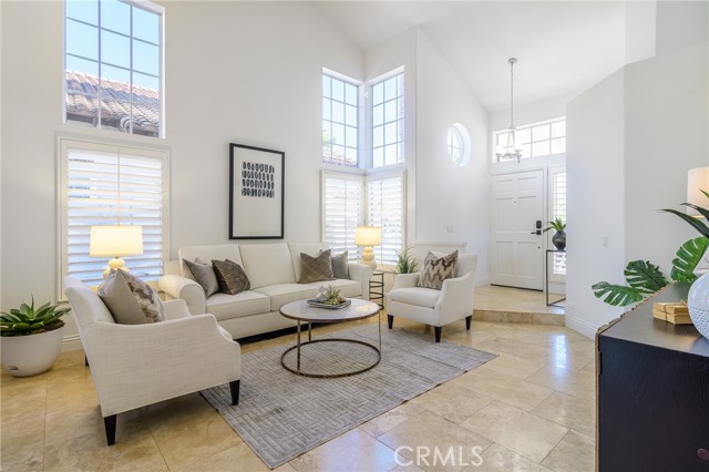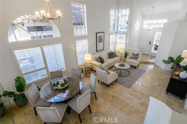 Welcome to this exceptional 4-bedroom, 3-bath single-family residence featuring the highly coveted Plan 3 model, gracefully situated at the end of a quiet cul-de-sac within the prestigious La Tierra community. Set along the Tijeras Creek Golf Course, the home showcases breathtaking panoramic views of Hole 2 from tee to green, offering a rare sense of privacy and resort-style ambiance. Thoughtfully designed for both elegant entertaining and everyday comfort, the home offers a generous entertainer’s backyard highlighted by a sparkling pool and spa, ideal for hosting gatherings or enjoying tranquil evenings under the stars. Inside, refined living spaces are enhanced by a spacious kitchen, soaring cathedral ceilings, and abundant natural light. A main-level bedroom and full bath provide exceptional flexibility for guests, multigenerational living, or a private executive office. The upper level is anchored by a luxurious primary bedroom suite, creating a serene retreat, while additional bedrooms and ample storage complete the home’s well-appointed layout. Additional highlights include a substantial three-car garage with custom built-in cabinetry and a state-of-the-art programmable solar system with backup battery, seamlessly blending sophistication with modern efficiency. Meticulously well maintained and located in one of the area’s most desirable golf course communities, this residence presents a rare opportunity to experience refined living, privacy, and spectacular views in La Tierra.