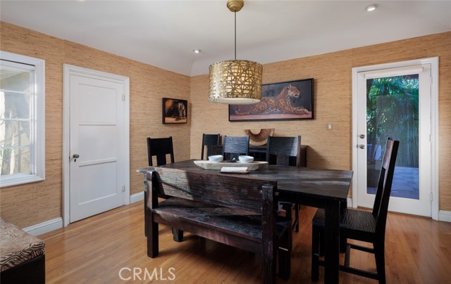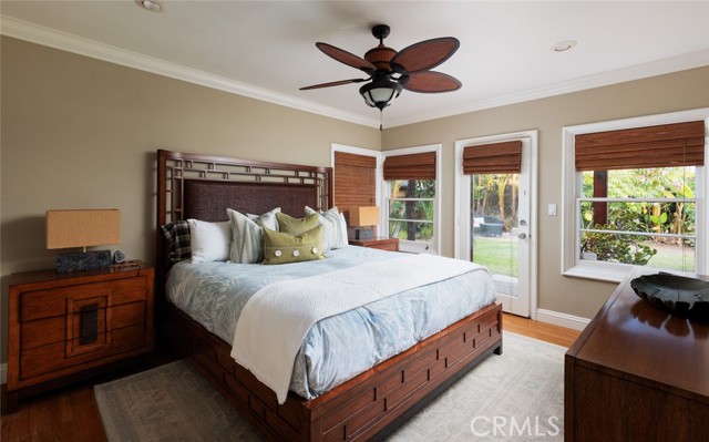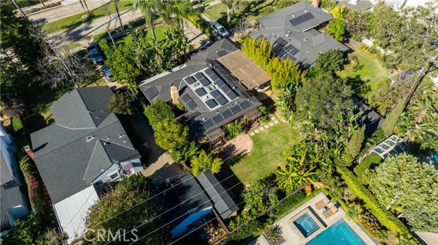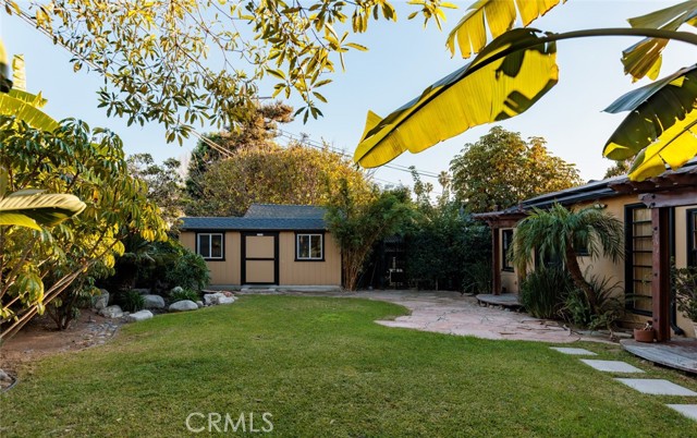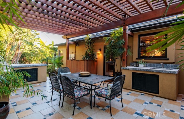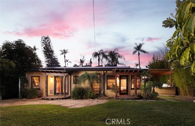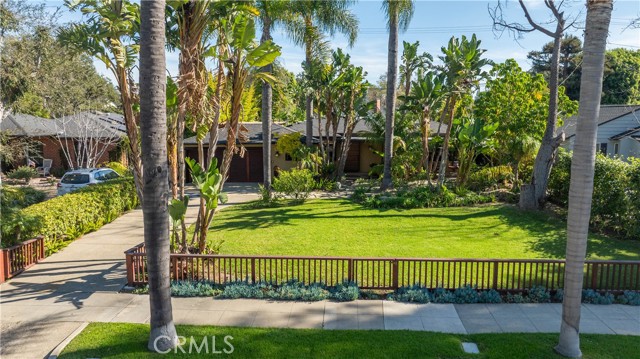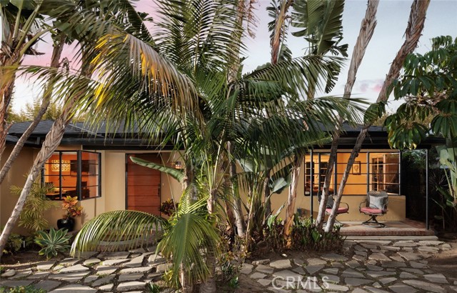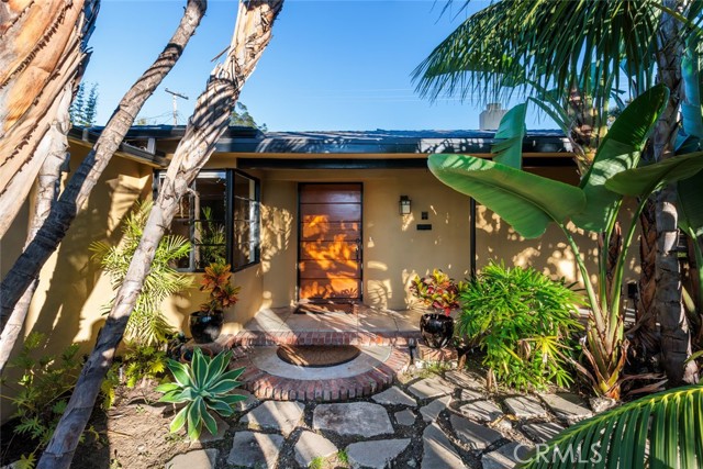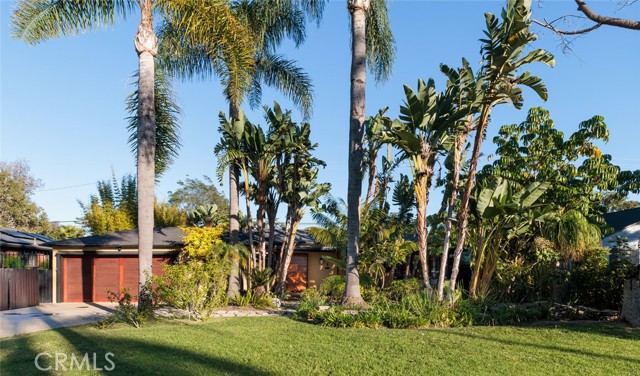 Tropical serenity surrounds this elegant, Art Deco–inspired, Asian-influenced, single-story Floral Park historic home, enhanced by the highly desirable Mills Act. A sophisticated blend of contemporary Pacific design and classic Moderne architecture, this residence offers an exceptional fusion of style, comfort, and seamless indoor-outdoor living, with captivating views from nearly every window. Rich hardwood floors, crown moldings, French doors, and thoughtfully selected natural finishes set a refined tone throughout. The formal living room showcases a dramatic coved ceiling, a striking bronze glass mosaic fireplace, and French doors opening to a secluded, trellised patio, an intimate retreat! The formal dining room features grasscloth wallpaper in a soft, earth-tone palette, expansive corner windows, and an adjoining office niche for added versatility. The sleek, contemporary kitchen, ideal for the Zen-inspired gourmet chef, boasts quartz countertops, a bronze glass mosaic tile backsplash, terrazzo flooring, high-end stainless steel appliances, and custom solid-wood cabinetry in deep, rich tones with abundant storage. Both the kitchen and dining room open through French doors to a fabulous outdoor kitchen and grilling area, creating a natural extension of the home and an ideal setting for entertaining. Three spacious bedrooms each feature French doors leading to the lush tropical grounds. The primary suite opens to a private deck with a Japanese-style soaking tub, offering a tranquil spa-like escape. Two beautifully remodeled bathrooms feature luxurious finishes and timeless design. French doors and inviting views from nearly every room lead to a spectacularly private oasis, complete with hidden garden vignettes, serene patios, wooden pergolas, vibrant tropical landscaping, and expansive lawn space. A spacious Tuff Shed in the rear corner provides convenient storage. Additional highlights include seller-owned solar to offset most electrical costs, a newer roof installed approximately five years ago, and the significant property tax savings afforded by the Mills Act. Built in 1936 and set back on a very private 10,519 square foot lot in sought after Historic Floral Park, a neighborhood known for its architecture, where it is easy to get involved in their many activities and events such as their Home and Garden Tour in April or any of the many holiday events! This is a rare opportunity to own a truly special home. Prepare to fall in love and make it yours.