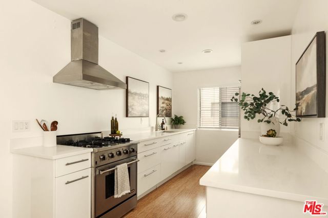 Perched on the top floor and bathed in natural light, this move-in-ready corner residence offers an elevated take on city living in the heart of Koreatown/Hancock Park. A welcoming foyer opens into a bright, generously scaled living space that flows effortlessly to a private balcony. The sleek, updated kitchen is both refined and functional, featuring crisp white quartz countertops, ample cabinetry, and newer appliances designed to support everything from casual meals to inspired cooking. The adjacent dining area creates a natural flow for entertaining, seamlessly connecting the kitchen and living spaces. As a corner unit, the home is lined with windows throughout, filling each room with warmth and light. The primary suite is a calm retreat, complete with a walk-in closet and a modern en-suite bath highlighted by an oversized shower. A versatile second bedroom easily adapts as a guest room or home office, while the secondary bath features a timeless white subway tile design and soaking tub. Bamboo wood flooring runs throughout, complemented by in-unit laundry (with community laundry also available), two parking spaces, and additional storage. Residents enjoy low HOA dues that include access to a pool and spa. Just moments from Larchmont Village, dining, shopping, and transit, this home delivers walkable convenience and effortless Los Angeles living, and an exceptional opportunity to own in a prime location rather than rent.