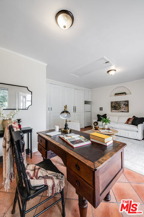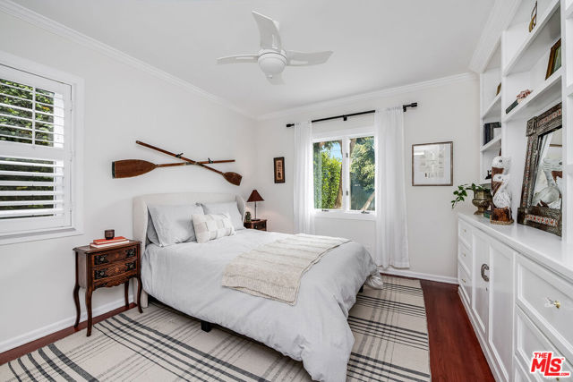 Tucked away in a private, hedge-lined setting in Santa Monica, this tasteful California ranch offers an uncommon sense of outdoor space and everyday livability, set on an approx. 5,505 sq ft enclosed lot. The property feels self-contained and buffered while remaining centrally located. The main residence spans approx. 1,250 sq ft with three bedrooms and two bathrooms, featuring a clean, single-level layout with hardwood floors, abundant natural light, and subtle character details including stained glass windows. The kitchen has been updated with Thermador appliances, and the home has been thoughtfully maintained with recent updates that support long-term ownership, including a newer roof, improved drainage, and a Tesla EV charger. Outdoor space is a true standout, with multiple areas for entertaining or everyday living, enhanced by landscape lighting and mature fruit trees including avocado, mandarin, Eureka lemon, and white grapefruit. The setting lends itself naturally to slow mornings, relaxed evenings, and easy indoor outdoor flow. A finished, detached converted garage adds valuable flexibility, ideal for a home office, studio, gym, or guest house. Convenient access to the 10 Freeway, and close to major Westside employers such as Snap Inc. and Riot Games, as well as neighborhood dining and shopping throughout Santa Monica. A strong Santa Monica offering prioritizing privacy, usability, and long-term ownership value.