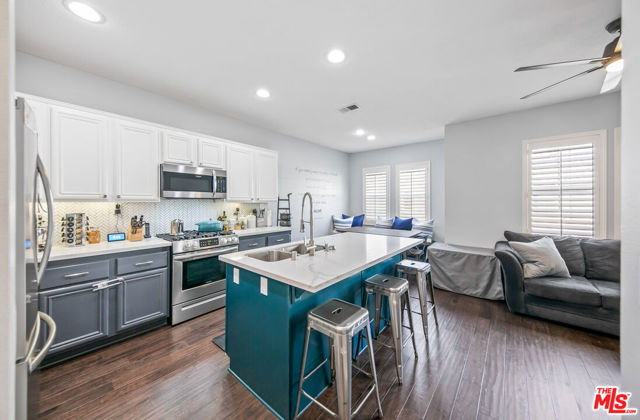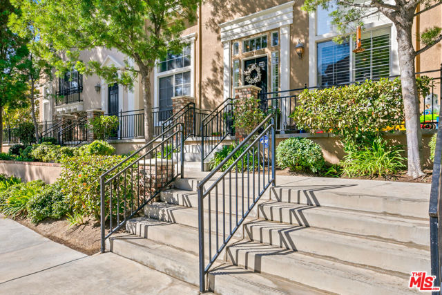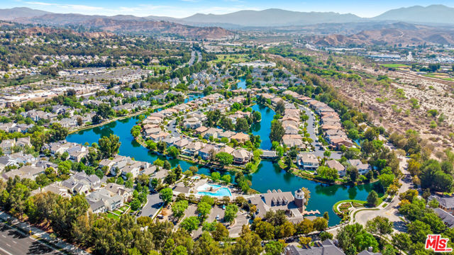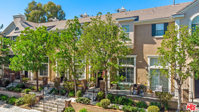 Welcome to this beautifully crafted, Victorian-inspired townhome with a modern twist, ideally located in the highly sought-after Bridgeport Valencia community with NO Mello-Roos. This stunning tri-level residence offers 3 generously sized bedrooms, 2.5 bathrooms, and 1,844 square feet of thoughtfully designed living space, along with a spacious 2-car attached garage featuring extra room ideal for a home gym or additional storage. From the moment you arrive, the home's charming architecture and exceptional curb appeal make a lasting impression. Inside, you're welcomed by soaring ceilings and a formal living room highlighted by a cozy fireplace and rich dark wood flooring that flows throughout the home. A short staircase leads to the second level, where the formal dining area seamlessly connects the kitchen and upper level. The beautifully remodeled kitchen is the heart of the home, featuring quartz countertops, a large center island, ample cabinetry, stainless steel appliances, and a delightful breakfast nook. The kitchen opens to a warm and inviting family room with built-in cabinetry, a modern ceiling fan, and plantation shutters found throughout the home.On the third level, a spacious hallway with built-in linen cabinetry separates the bedrooms for added privacy. The primary suite is a relaxing retreat, complete with a charming bay-window bench perfect for morning coffee or reading. The en-suite bathroom features dual vanities, a separate jetted tub, walk-in shower, privacy toilet area, and a spacious walk-in closet. Two additional bedrooms are located on the opposite end of the hallway, one with a walk-in closet, and share a well-maintained full bathroom. Residents of Bridgeport enjoy resort-style amenities including a private lake, elegant clubhouse, pool and spa, BBQ areas, and scenic walking trails surrounded by fountains and lush landscaping. Conveniently located near shopping, dining, large parks, and the award-winning Bridgeport Elementary School. This is a rare opportunity to own a beautifully upgraded home in one of Valencia's most desirable communities - don't miss it.