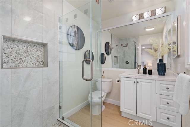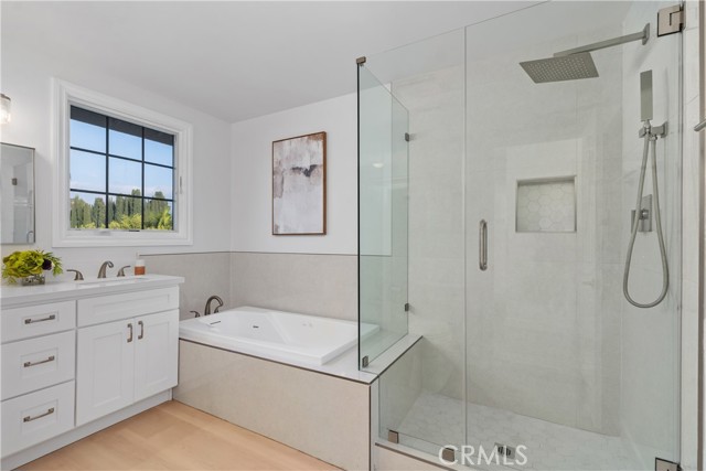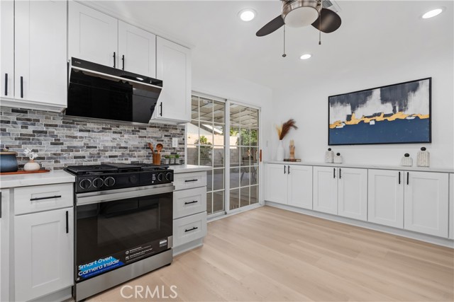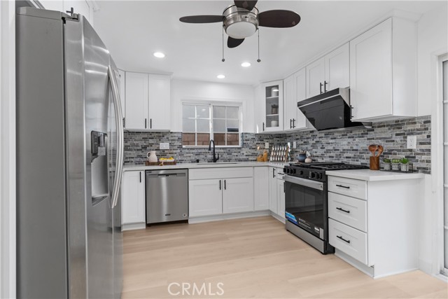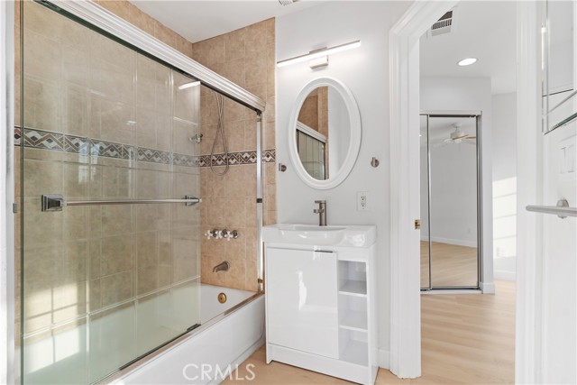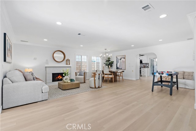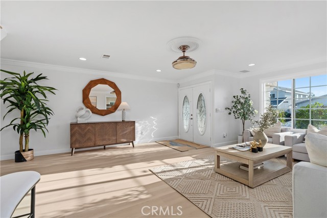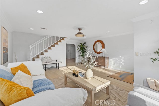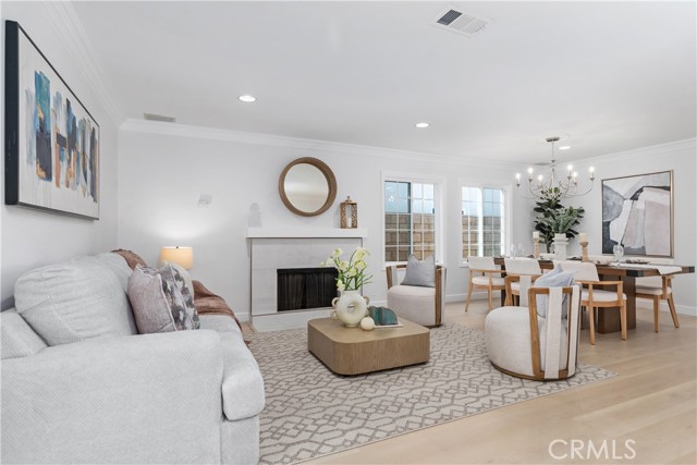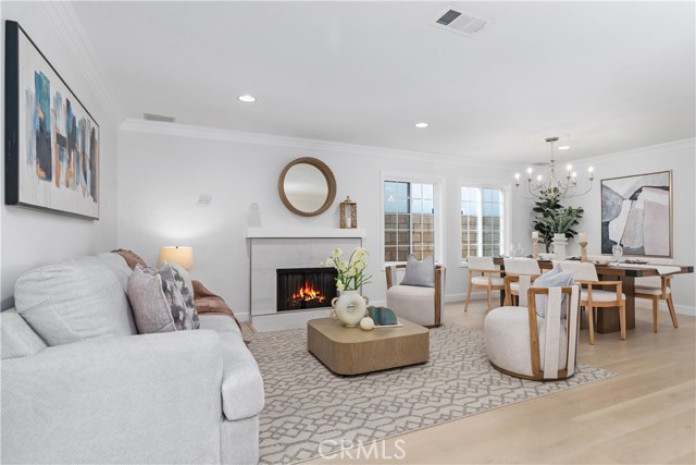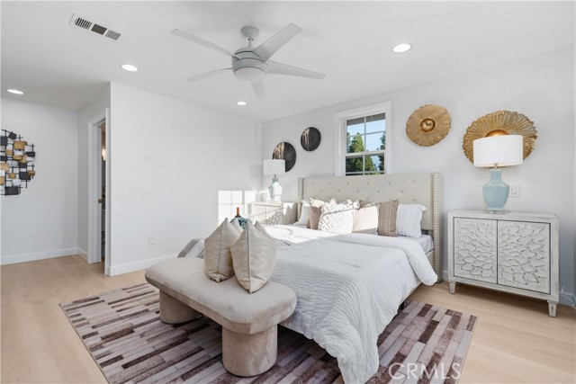 Two-primary-suite home offers approximately 3,000 sqft of modern living space on a 5,000 sqft lot. With 6 bedrooms and 4 bathrooms, it is ideal for large or multi-generational families, or as an income-generating property. Recessed lights, a freshly painted interior and exterior, double-pane windows, and new luxury vinyl plank flooring are throughout the house, along with a 2-year-old roof. The spacious living room, featuring a white wrought-iron railing leading upstairs, flows seamlessly into the family room—highlighted by elegant ceiling fans with lights, a statement chandelier, and a cozy fireplace. The gourmet kitchen is a highlight—remodeled with white cabinets, sleek stainless steel appliances (including a large side-by-side refrigerator with water/ice dispenser), a gas range, newer dishwasher, and quartz countertops. Upstairs, the master bedroom exudes calm luxury, and its attached primary bath is spa-like, featuring a deep soaking tub, separate glass-enclosed shower, dual vanities with white cabinetry, modern fixtures, large windows for natural light, and a walk-in closet. The downstairs master suite is freshly updated—one with sliding glass doors opening to the backyard, perfect for a guest suite. The remodeled bathroom includes a walk-in shower and grab bars (great for accessibility).A STANDOUT FEATURE IS THE SEPARATE ENTRANCE CONFIGURATION FOR THREE BEDROOMS AND TWO BATHROOMS, ALLOWING EASY CONVERSION INTO A RENTAL UNIT, ADU-LIKE SETUP, OR IN-LAW QUARTERS—IDEAL FOR GENERATING PASSIVE INCOME IN HIGH-DEMAND IRVINE. The home features a clean, contemporary Mediterranean-inspired facade with an elegant arched entryway, columns, covered porch, and tasteful sconces. The low-maintenance, drought-tolerant front yard includes a raised brick retaining wall, succulents, ornamental grasses, fruit trees (oranges and tangerines), river rock landscaping, mature trees, and white fencing for privacy and street appeal. A two-car garage with arched windows and a long driveway offer plenty of parking. The backyard is an entertainer's dream, boasting a large covered patio with corrugated roof for year-round shaded al fresco dining, plus a separate detached room ideal for a home office, gym, studio, or hobby space—adding exceptional flexibility. Nestled in the center of Irvine, this home benefits from the top-rated Irvine Unified School District, including Irvine High School within walking distance. You're close to Irvine's renowned parks, trails, shopping, and more.