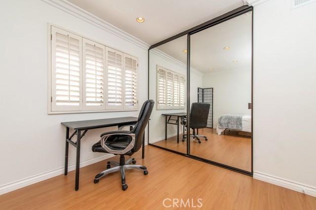 Location, Location, Location….Beautiful charming one story 3 bed/2 bath home centrally located in the community of Windwood Garden home. The 3rd bedroom is now a den, Walking distance to shopping center where 99 Rach Market, CVS, restaurants are situated. This is one of the paired home with a small private back yard and the front yard is enclosed with the white picket fence. The side/back yard extend to the side of the master bedroom which provides the feeling of openness. Upgraded kitchen granite counter top, bathroom jacuzzi. Wood shutters and wood flooring throughout the whole property. Vaulted ceiling and fireplace in the living/family room. First room is now a den with nice built-in selves and computer desk. Walk to pool, park and shops. Great school, great location and great floor plan. MUST SEE to appreciate! NOTE: ONLY the garage attached to the neighbor. LOW TAX (1.06%), NO Mello Roos , Monthly HOA Fee ( $410.50 monthly). MUST SEE!!!!!