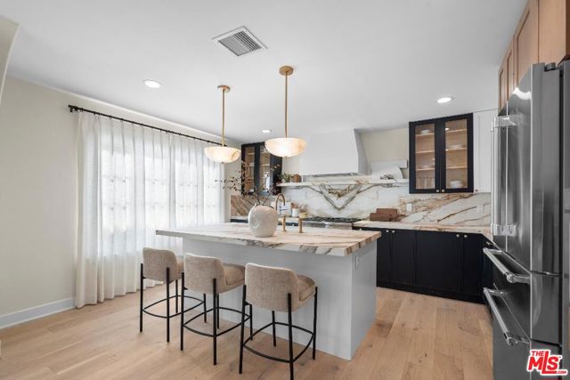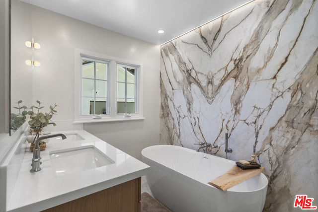 An elegant single-story residence in the heart of Miracle Mile, filled with warmth and abundant natural light from expansive windows. The bright living space is ideal for both relaxation and entertaining.The home features three well-appointed bedrooms, each with its own bathroom, including a luxurious primary suite with a walk-in closet and double vanity bath, and a junior suite with double sinks and direct outdoor access, along with a stylish powder room. A sophisticated kitchen with a statement island and stainless steel appliances flows seamlessly into a sun-filled formal dining area.A versatile garage offers endless possibilities as a private office, gym, or creative studio, while a generous private outdoor retreat completes the home. Located just steps from the local library and minutes from Pan Pacific Park, The Grove, Melrose, LACMA, and Beverly Hillsoffering an exceptional Los Angeles lifestyle.