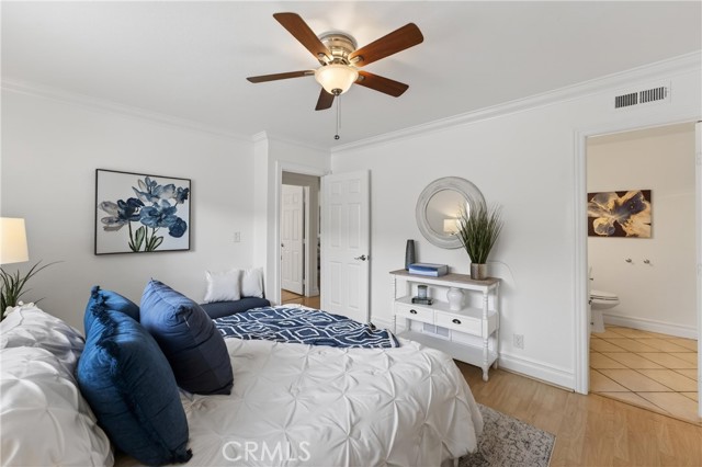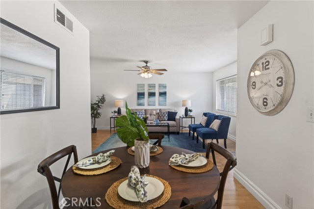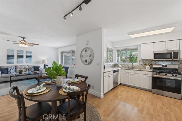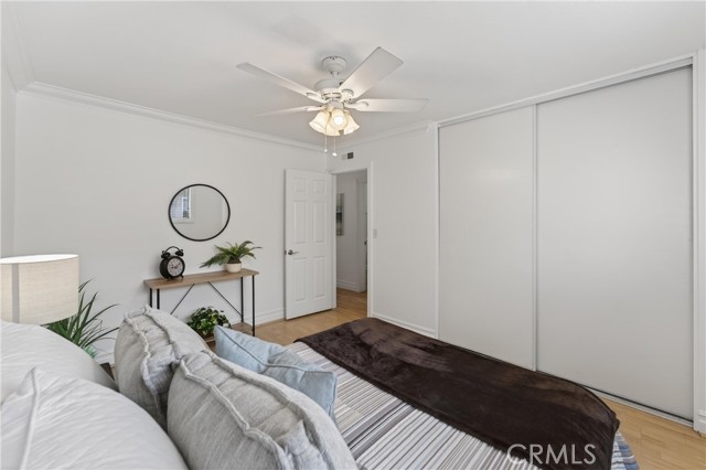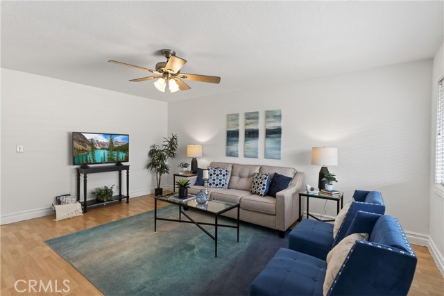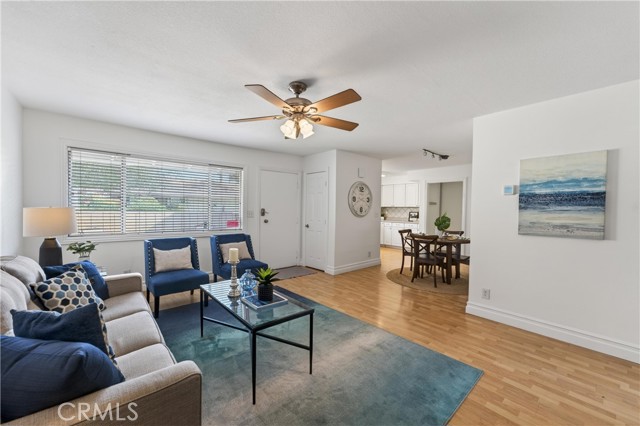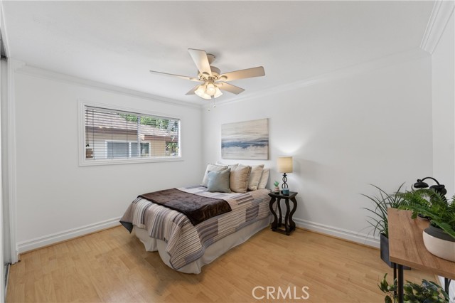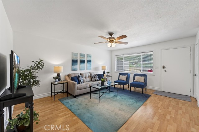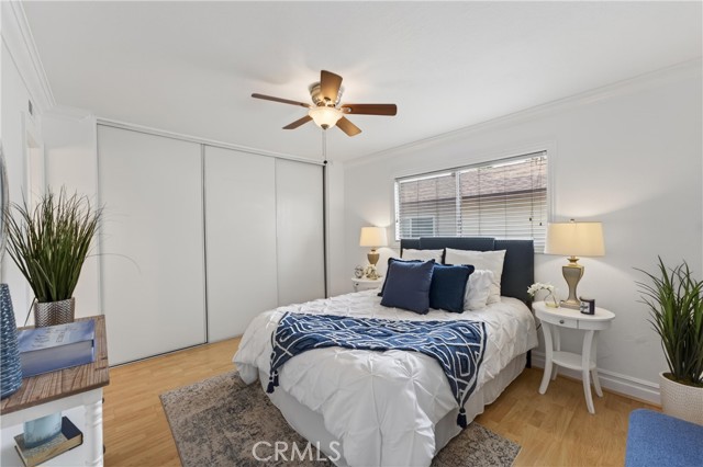 Welcome to paradise at Coco Palms! Located in the heart of Fullerton, this beautifully maintained single-level condo offers an open and airy floor plan with 933 square feet of living space, featuring 2 bedrooms and 2 bathrooms designed for comfort and ease. Step inside to find laminate and tile flooring throughout, creating a clean, modern feel. The primary suite is a relaxing retreat with crown molding, ceiling fan, laminate floors, window blinds, and a custom built-in closet system. The primary bathroom is finished with tile flooring, Corian countertops, newer fixtures, and a tiled walk-in shower. The second bedroom also features crown molding, ceiling fan, laminate flooring, window blinds, and a built-in closet system—perfect for guests, a home office, or shared living. Bathroom two includes tile flooring, a tub/shower combo, tile countertops, over-mount sink, newer fixtures, and classic wainscoting. The family room is bright and inviting with laminate flooring, ceiling fan, and natural light flowing in through large windows. The kitchen is thoughtfully updated with stainless steel appliances, Formica countertops, tile backsplash, stainless steel sink, track lighting, and window blinds—ideal for everyday living and entertaining. Enjoy your semi-private front patio, offering great natural sunlight and a peaceful place to relax.. The Coco Palms community features a gated pool and spa, expansive greenbelt areas, community laundry facilities, and assigned one-car carport parking with a lockable storage bin. Ideally located near the vibrant restaurants, shops, and entertainment of Downtown Fullerton, this home combines comfort, convenience, and community living at its best.