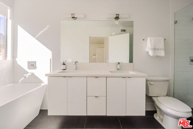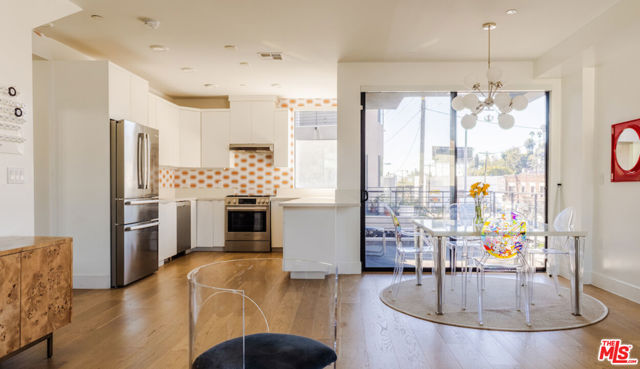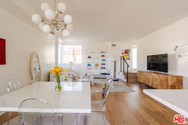 Set within The Cliffs, a boutique collection of modern architectural homes in Echo Park, this light-filled 2-bed, 3-bath residence unfolds across four thoughtfully designed levels with elevated, contemporary appeal. Abundant natural light enhances warm wood floors and a seamless open-concept layout, creating a space equally suited for everyday living and entertaining. A secure, private gate leads to a striking foyer level featuring poured concrete floors and a stylish powder bath, ideal for guests, along with direct access to the attached two-car garage for added convenience. The main living level is anchored by a vibrant kitchen with custom wallpaper, opening to an adjacent deck through large glass sliders for effortless indoor-outdoor living. The dining area and spacious living room connect seamlessly, offering an inviting and well-balanced flow. Upstairs, the serene primary suite serves as a true retreat with a custom wall of closets and a spa-inspired en-suite bath complete with a standalone soaking tub, double vanity, and luxurious finishes. A generous second bedroom, full hall bath, and laundry complete the upper level. Crowning the home is a stunning rooftop deck with sweeping city views; perfect for sunset gatherings, quiet evenings, or taking in the energy of the neighborhood below. Ideally located near beloved local favorites including Echo Park Lake, Masa of Echo Park, The Echo, and Semi-Tropic, with easy access to Downtown Los Angeles and beyond. Modern, light-filled, and impeccably designed. This is Echo Park living at its best.