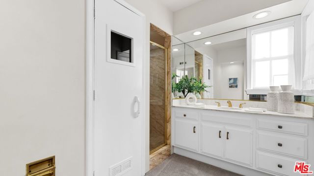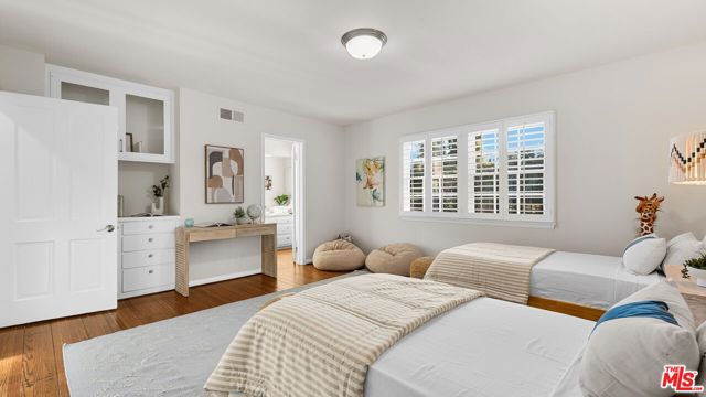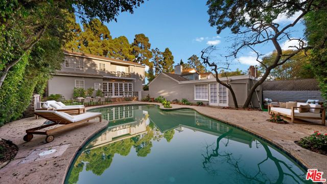 Set on sought-after 24th Street north of Montana, in the luxury of Gillette Regent Square, this inviting traditional home offers four bedrooms, six bathrooms, and an abundance of natural light throughout. Thoughtful architectural details such as crown moldings and hardwood floors create a timeless atmosphere, while the home's open and airy layout enhances the sense of space and flow. The home's layout is ideal for both relaxing and entertaining. An entry foyer leads to a formal living room with a fireplace and an abundance of windows, allowing natural sunlight to enhance the space. An elegant dining room with crown moldings and windows exposes the wonderful front garden with views of the majestically tall trees that welcome you as you arrive at the home. Additionally, the main floor is anchored by a sunlit kitchen, separate informal dining area, and family room that open directly to the outdoor entertainment and living areas through floor-to-ceiling French Doors. The result is a seamless connection to the patio, lushly landscaped yard, oversized pool, and spa, all of which invite you to enjoy this very private and calming indoor-outdoor living experience. A bedroom with an en-suite bath on the first floor offers flexibility as a guest suite, office, or den. Upstairs, the primary suite creates a private retreat, complete with a sitting area, fireplace, private sauna, dual walk-in closets, and two beautifully finished marble bathrooms, one with French Doors opening to a private balcony overlooking the pool and private backyard. Two additional large bedrooms, one with its own en-suite bath and an additional bathroom,m are also located on this level. The four-car garage has been partially converted, with two parking spaces remaining and an additional large, finished bonus area. Separately accessible through the lush yard, this private space features its own fireplace and an additional private patio. Currently used as a media and game room, this versatile space also offers potential for a home gym, office, or future ADU, adding long-term flexibility and value. Located moments from Brentwood Country Mart, Montana Avenue, and Franklin School, this home presents a wonderful opportunity for families and entertaining.