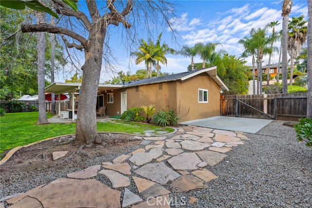 Paradise Oasis - this Lucious Multi- Gen single story has 3 bed | 2 Bath.||Enter to light and beautiful open spacious common area. The living room has corner view windows then to the vaulted dining and family room just aside the upgraded kitchen with plenty of counter space and the sink looks out to the amazing back yard oasis. Down the hall there is a new wonderfully designed bathroom and two bedrooms one with a dreamy window bench. The third bedroom is a Multi-Gen suite with a small kitchenette, a separate entrance through light french doors, an expanded closet a beautifully upgraded en-suite bathroom with dual sinks shower and storage and view to the private patio. There is Luxury Vinyl Plank floors throughout the home, two car garage with epoxy floors, gated RV parking and ||The property is luxuriously tropical sanctuary that is picturesque and has hosted two weddings with such a beautiful backdrop and privacy to enjoy the So Cal weather. Near shopping and schools, botanical gardens, parks Do not miss this move-in ready Gem