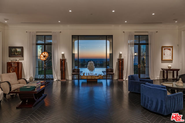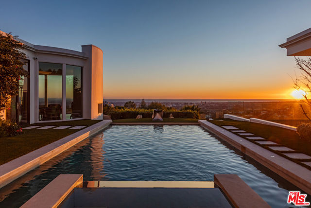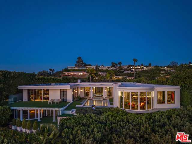 Set on a tranquil cul-de-sac in the prestigious Trousdale Estates, this exceptional mid-century residence occupies a promontory lot with sweeping, unobstructed views spanning the city, canyon, and Pacific Ocean. An oversized motor court creates a grand sense of arrival. Designed with a refined sense of scale, the open-concept layout features soaring ceilings, timeless limestone floors, and subtle Parisian-inspired detailing. A dramatic entry opens to expansive living and entertaining spaces, anchored by a chef's kitchen and a luxurious primary suite. Walls of glass reveal an infinity-edge pool and spa, while the grounds include a private orchard producing seasonal fruits and vegetables. Casa Alta Tierra is an estate of rare seclusion and lifestyle distinction, framed by a striking panoramic backdrop, offering the ultimate Trousdale living experience.