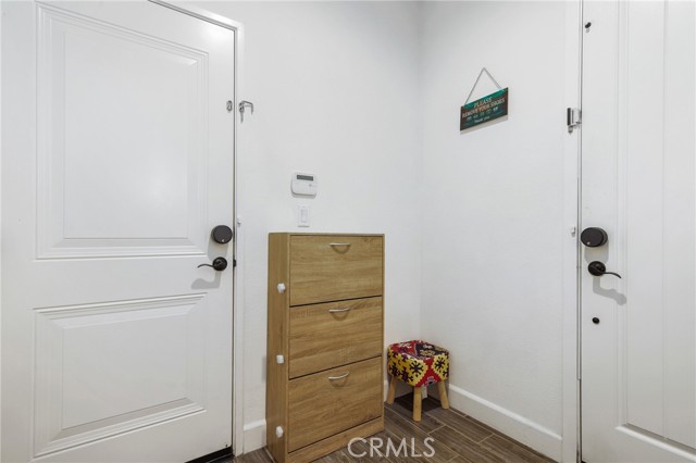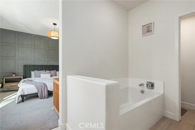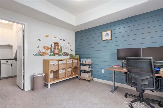 A stunning three-bedroom condominium located in the sought-after Domain community which is situated within close distance of Anaheim's Historic Packing District. The interior features an open-concept floor plan characterized by abundant natural light and high-end finishes, including wood-look tile flooring, designer lighting, and recessed lights throughout. The spacious kitchen is equipped with quartz countertops, a custom backsplash, stainless steel appliances, and a generous island overlooking the entertainment area and private covered balcony. As a comprehensive smart home, the property includes integrated lighting, smart blinds in the primary suite, and a Nest doorbell. The primary suite offers a secluded ensuite with dual sinks, a separate tub and shower, and a walk-in closet. The additional bedrooms feature custom upgrades, including a shiplap accent wall and built-in cabinetry. Further enhancements include: Finished two-car side-by-side garage with epoxy flooring, custom cabinetry, and extra storage/workout space. Two EV chargers and a tankless water heater. Salt-free water softener and filtration system. Upgraded laundry room with a folding station. Residents of The Domain enjoy secure gated access to premium amenities, including a resort-style pool, outdoor fireplaces, picnic areas, and a private rooftop lounge with views of the Disneyland fireworks. Plus HOA includes free internet of 1GBPS. Its central location provides convenient access to local freeways, public transit, and major attractions such as Disneyland, the Honda Center and Angels Stadium.