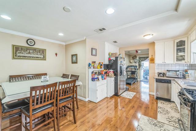 Come and See this Charming Single Story home on a expansive lot. We welcome you to this beautifully maintained property, that is fully landscaped offer incredible potential. Whether you are looking to expand the existing home or build an additional dwelling, this property gives you the space and flexibility to create your own vision. Inside you will find tasteful upgrades including durable vinyl flooring, elegant crown moldings, ceiling fans in every room and a improved title bath room. The kitchen and living areas flow seamlessly for comfortable everyday living and easy entertaining. Step outside and enjoy the lush, fully landscaped yard with mature fruit trees and also has an enclosed tool shed for additional storage. The detached garage comes with pre-plumbing for a future bathroom and it own water heater feature, perfect for converting into an ADU or guest suite. This home is ideal for hosting friends and family, relaxing outdoors or plan your next big addition. Don't miss this rare opportunity to own a versatile property with room to grow.