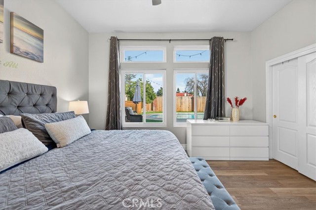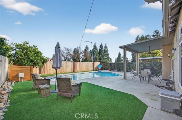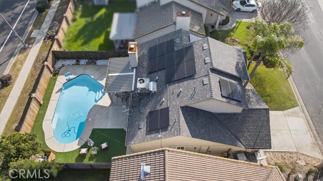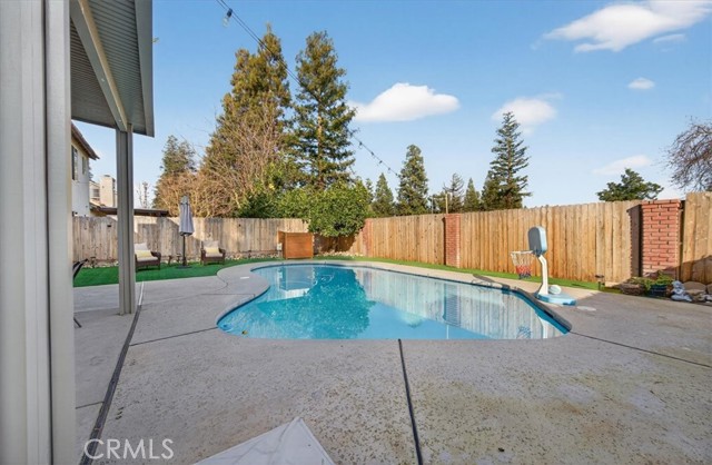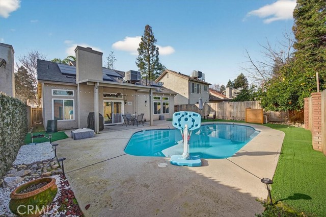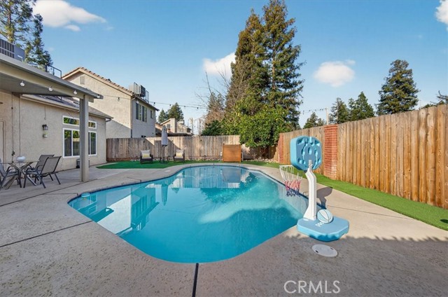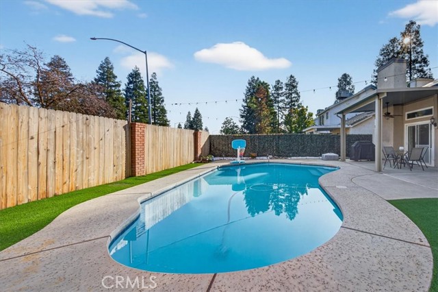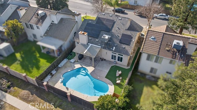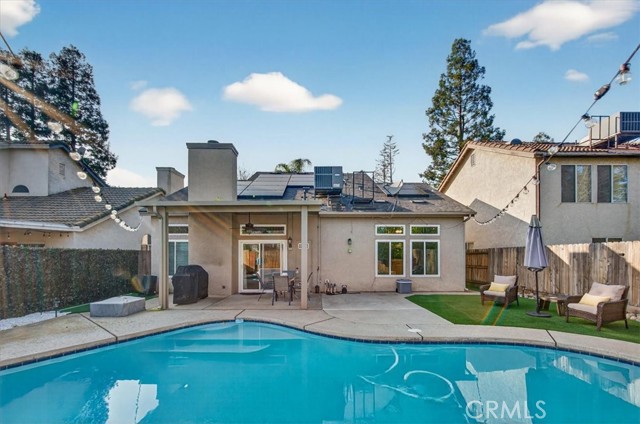 Beautifully updated and well-maintained Granville-built 3-bedroom, 2.5-bath home featuring an open-concept layout with soaring high ceilings, a spacious loft, and abundant natural light. Major upgrades include a newer roof and HVAC system (approx. 5 years old), recently upgraded vinyl flooring, fresh interior paint, and updated lighting throughout. The expansive primary suite offers an upgraded en-suite bathroom with a modern digital mirror, while the kitchen and bathrooms showcase quartz countertops and double-pane windows installed in 2018, enhancing comfort and energy efficiency. The refreshed backyard features a sparkling in-ground pool and low-maintenance turf, creating an ideal space for entertaining or relaxing. Additional energy savings are provided by a leased solar system (details attached). Conveniently located within Clovis Unified School District boundaries, near parks, trails, shopping, and dining, all in a quiet, well-established neighborhood.