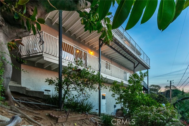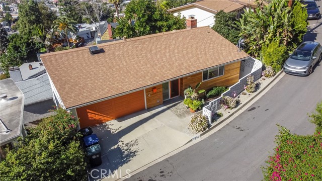This two-level single-family home is located in the desirable hillside enclave of Adams Hill in Glendale, where surrounding open land enhances privacy and openness. Mature landscaping and a well-designed front yard create inviting curb appeal. Located near parks, shops, schools, Costco, Glendale Galleria, and The Americana at Brand, with quick access to the 2 Freeway providing easy connectivity to Glendale, Pasadena, and DTLA. Thoughtfully upgraded while retaining its mid-century character, the home features a newer roof, water heater, water softener, updated electrical panel, dual-pane windows, newer non-asbestos attic insulation, and included washer and dryer. The upstairs bedroom and bathroom offer newer flooring and an updated shower. Inside, the living room showcases wood flooring, a fireplace with a painted white brick surround, and large windows for abundant natural light. The upgraded kitchen includes stainless steel appliances, ample counter space, tile flooring, and opens to the dining area with scenic views. The main-level bedroom is bright and spacious, with a bathroom featuring a shower enclosure and dual-sink vanity. The lower level includes two bedrooms, a full bathroom, and a large family room with fireplace, suitable for a media room, gym, studio, or home office. Two balconies enhance indoor-outdoor living with mountain views and evening lights, while the hillside backyard is surrounded by mature greenery and fruit trees, offering a peaceful outdoor retreat.