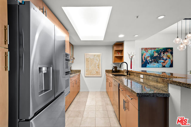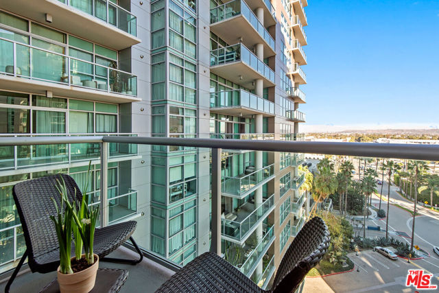 Welcome to this one-of-a-kind condo in the prestigious full-service high-rise building, Azzurra. With only 8 units like this in the entire complex, this unique and meticulously maintained home offers a loft-like feel spanning over 1,400 square feet and gorgeous city and mountain views! With an ideal open floor plan perfect for both entertaining and everyday living, it also features gorgeous hardwood floors, stainless steel appliances, tons of cabinets and counter space, breakfast bar and newer appliances. Downstairs you will find a cozy nook perfect for an office and by far the largest bedroom in the entire building! Luxurious en-suite bath has been updated and features a gorgeous walk-in shower, white cabinets, two sinks and large walk-in closet. This amazing home also offers a powder room upstairs, washer/dryer in unit, two balconies, two parking spaces and so much more! HOA fees include cable w/HD channels, internet, water, trash, earthquake insurance and an abundance of resort-style amenities -24 hour valet parking for guests, 24 hour front desk and security, concierge, rooftop spa and sky-lounge with panoramic views, outdoor kitchen with BBQ's, sparkling heated pool and spa, business center, media lounge, fine art collection, indoor/outdoor professional fitness center with yoga/pilates training studio, and more. Just seconds from world famous beaches, Marina access, LAX, parks, bike path, dog walk, Abbott Kinney, shops/restaurants, dine-in movie theater, and much more! **Property can be sold with most of the furnishings included.**