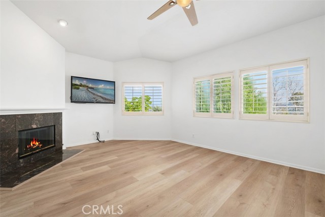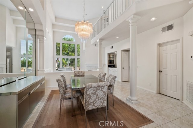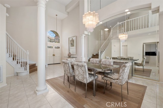 A dramatic entry welcomes abundant natural light through expansive windows and soaring 18-foot ceilings, immediately highlighting the home’s gorgeous open design—both comfortable for everyday living and elegant for entertaining. Nestled within the exclusive gated community of Bella Vista on one of its most coveted view lots, this beautifully updated residence offers over 2,500 square feet of thoughtfully designed living space, including three bedrooms, two-and-a-half bathrooms, a versatile loft, and a rare three-car garage. The formal living room is anchored by a fireplace and framed by stunning two-story windows, while the adjoining dining room features refined architectural details ideal for hosting. Recent renovations throughout the home add a fresh, modern feel while preserving timeless elegance. The gourmet kitchen showcases custom cabinetry and a generous casual dining area that flows seamlessly into the family room, complete with a second fireplace and direct access to the backyard. Upstairs, the primary suite serves as a private retreat with its own fireplace, dual vanities, soaking tub, separate shower, and a spacious walk-in closet. Two secondary bedrooms and a flexible loft complete the upper level, perfect for a home office, media space, or lounge. The multi-level backyard opens to breathtaking views, creating a private oasis ideal for both relaxation and entertaining. Residents of Bella Vista enjoy a gated entry, community pool and spa, ample guest parking, and meticulously maintained grounds, all conveniently located near parks, hiking trails, shopping, dining, theaters, and top-rated schools. This home effortlessly blends resort-style living with everyday comfort and sophistication.