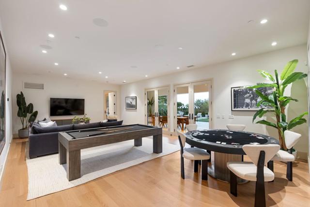 Striking modern estate offering the perfect blend of luxury, scale, and design. This full scale renovation showcases soaring ceilings, dramatic floor-to-ceiling windows, and seamless indoor-outdoor living. The spacious floor plan features grand formal and casual living areas, a sleek chefs kitchen, and walls of glass opening to expansive terraces with serene tree-lined views. Luxury amenities include a private home theatre, gym, tasting room and wine cellar, elevator, and a resort-style backyard with pool house and built-in BBQ. The sparkling pool with water features, multiple lounge areas, and expansive patio create the ultimate setting for entertaining and relaxation.