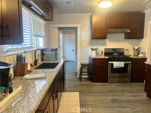 Excellent opportunity to own a single-family residence with a rear duplex in a desirable Sierra Madre location near Old Town. The front unit is a detached single-family home featuring 3 bedrooms and 1 bathroom, completely gutted and remodeled approximately 5 years ago. It offers a living room with a wood-burning fireplace, a formal dining room, and an updated kitchen with granite countertops, soft-close cabinets, and newer appliances. Additional features include LVP flooring throughout, dual-pane windows, recessed lighting, a dedicated laundry room, a basement providing extra storage or flexible use space, and its own private backyard. A new composition roof was also installed on the front house around 5 years ago. The rear duplex includes two units and two one-car attached garage: one garage space is allocated for the single-family home, and the other is dedicated to the one-bedroom, one bath unit. Both units also enjoy a side yard and a backyard. Upstairs: A one-bedroom, one-bath unit with a warm, inviting kitchen featuring wood-paneled walls, open shelving, and ample cabinetry. The kitchen includes a vintage-style range, generous counter space, and a breakfast bar that opens to the living area, creating a comfortable and functional layout. Downstairs: A studio unit with a kitchen, eating area, walk-in closet, and ¾ bathroom. This versatile property offers flexibility for owner-occupants or investors seeking a well-located income opportunity in Sierra Madre.