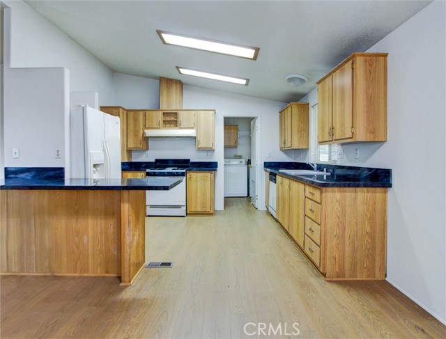 Spacious and well-maintained double-wide manufactured home featuring a comfortable and functional floor plan, located in a desirable all-age community. The home features water-resistant flooring throughout, offering both durability and style. The kitchen opens to a generously sized dining area, creating a functional and inviting space for everyday living and entertaining. The living and dining areas provide added comfort and flexibility, allowing for a variety of layout options. For added convenience, the home includes a washer and dryer, making laundry days effortless, along with additional space ideal for storage or multi-purpose use. The primary bedroom features a private ensuite bath complete with a soaking tub and separate shower, enhanced by abundant natural light from multiple windows and a skylight. Enjoy relaxing on the extended front porch—perfect for morning coffee or quiet afternoons. The rear and side yard offer excellent space for gardening and seasonal blooms. Additional highlights include a convenient storage shed and an attached carport accommodating multiple vehicles, along with ample guest parking nearby. The community is pet-friendly. Ideally located just minutes from major freeways, shopping, dining, local parks, and the beach, this home offers easy access to everything Westminster has to offer. The Beach Boulevard Cottages community is currently undergoing improvements and features desirable amenities such as a sparkling pool, clubhouse, on-site laundry facilities, and a car-wash area. Blending comfort and practicality, this inviting home offers relaxed living with the opportunity to add your personal touches.