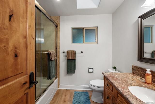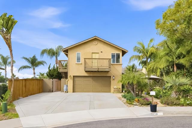 Tucked away on a desirable cul-de-sac, this lovely home offers the perfect blend of comfort, flexibility, and classic Carlsbad charm. Set on an expansive 11,400 sq ft lot with open space behind, the home enjoys peaceful views of lush greenery and mature trees, your own private retreat just minutes from the coast. Adding exceptional versatility is the attached ADU above the garage, included in the 2,172 sq ft of living space. Complete with a living area, kitchen, eating nook, bedroom, and bath, it’s ideal for extended family, guests, or a private retreat. Step onto the balcony and take in gorgeous sunset views, a daily reminder of how special this location is. The main home lives entirely on one level, featuring three bedrooms and two baths, and is thoughtfully designed for both everyday living and entertaining. The updated kitchen is a standout with alderwood cabinetry with pull-out drawers, granite countertops, stainless steel appliances, under-cabinet lighting, and travertine tile floors. It opens seamlessly to the spacious family room, where vaulted ceilings, a casual dining area, and a sliding door to the backyard invite gatherings to flow effortlessly indoors and out. The private and peaceful backyard oasis offers endless possibilities: sip your morning coffee, unwind at the end of the day, or host memorable gatherings surrounded by nature. A formal dining room opens to a tranquil grassy side patio, ideal for alfresco dinners, while the large living room offers a cozy stone fireplace and a charming barn door at the entryway. The front yard provides a welcoming sitting area, perfect for greeting neighbors or enjoying a quiet moment. The spacious primary bedroom features a walk-in closet, updated bathroom with skylight, ceiling fan, and French doors offering a lovely view and access to the backyard. Beautiful alderwood cabinets and doors are showcased throughout the home, adding warmth and a cohesive design element. All this, just minutes from the beach, Carlsbad Village, shopping, dining, schools, and freeway access. This is a home that truly offers options, warmth, and lifestyle, a rare opportunity in one of Carlsbad’s popular neighborhoods.