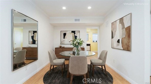 Light and bright 2 bedroom, 2 bath townhouse located in a quiet private gated community, with only 8 units. The inviting living room with wood floors, fireplace, and recessed lighting is open to the dining area leading to a step saver kitchen with breakfast area and lovely garden window. Ample cabinets, gas stove, microwave, refrigerator, and dishwasher ready for the chef in you. Washer and dryer are located in their recessed area in the kitchen. A conviently located half bath completes the downstairs. Upstairs are two bedrooms with ample closet space. Double doors, crown molding, and vaulted ceiling enhance the primary bedroom. Laminate wood flooring downstairs, central heat and air, crown molding, and wide slat blinds throughout gives this home the upscale feeling it deserves. Very low HOA makes this home a rare opportunity. Large courtyard area with plenty of room to gather for family barbecues and al fresco dining. One car gated parking and large private storage room are useful and practical. New roof and fence installed 2025. Conviently located between Lake and Allen Gold line stops and easy freeway access, also PCC, Cal Tech, and Art Center are close by along with Old town Pasadena shops and Rose Bowl just to name a few highlights.