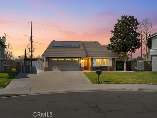 Back on the market at no fault from seller. Priced for a quick sale. Welcome to 2620 S. Quaker Ridge Place, tucked into a quiet cul-de-sac on over 9,500 sq ft of usable property. With soaring vaulted ceilings, crown molding, and wainscoting create a bright, open feel that carries throughout the living and kitchen space. The layout is designed for real living and entertaining, featuring stainless steel appliances, a walk-in pantry/storage closet under the stairs, downstairs half bath, fresh paint, and a stylish ship-lapped rock fireplace that anchors the room. Natural light pours in through dual-pane windows with wooden shutters and blinds, while energy-efficient lighting. And a built-in coffee/bar area. Step outside to your tropical backyard escape. This entertainer’s yard features a large aluminum patio cover with built-in gutters, electrical, and dual fans, plus a pool with diving board and upgraded equipment including a new filter, variable-speed pump, and vacuum. You’ll also find a fire pit, two storage sheds, RV parking, a dog run with doggie door. The yard has mature fruit trees including lemon, apple, orange, pear, plum, peach, and pomegranate, grapes, blackberries, aloe, elephant ears, and succulents. Energy efficiency shines with owned solar installed in 2019 (25 panels). Solar payments average about $250 monthly. Sellers are contributing $10,000 toward the remaining 27k solar balance. The garage has been upgraded with epoxy flooring and a second-level storage platform with conversion potential. Currently set up as a workshop, it includes a mini-split AC system, added outlets, pegboard walls, and shelving. Upstairs you’ll find four spacious bedrooms and two full bathrooms, including a primary suite with dual closets and private bath. Wood flooring and ceiling fans enhance each room. Additional upgrades include a smart WiFi thermostat and an energy-efficient 50-gallon water heater. Packed with thoughtful improvements and move-in-ready upgrades, this home delivers space, style, and functionality inside and out. all within the highly regarded Chino Valley Unified School District. Twilight open house Sat 3/14 5:30-8PM