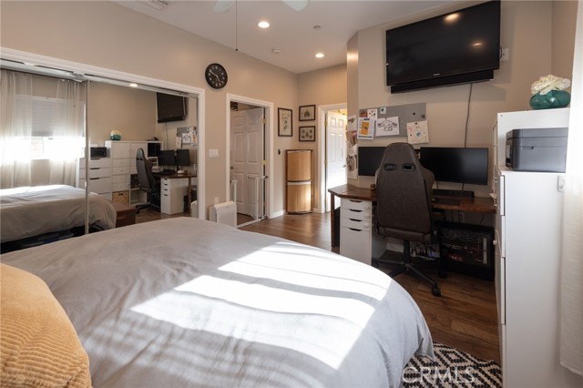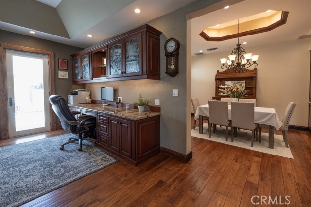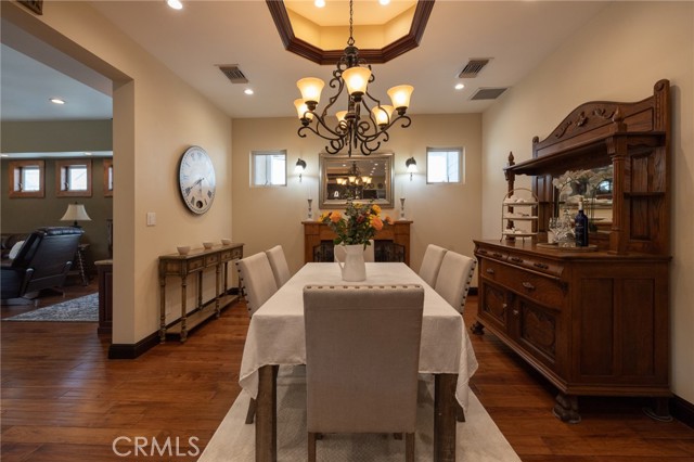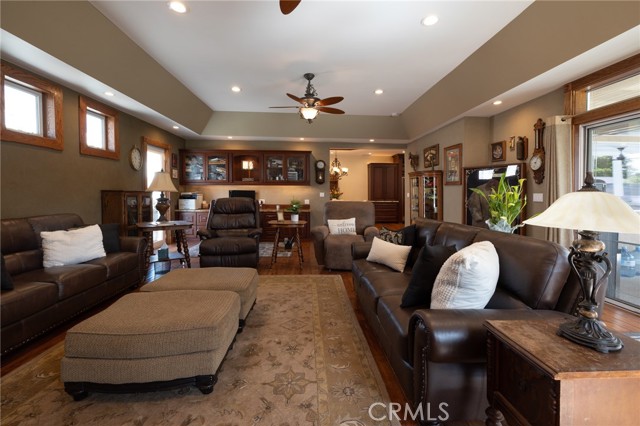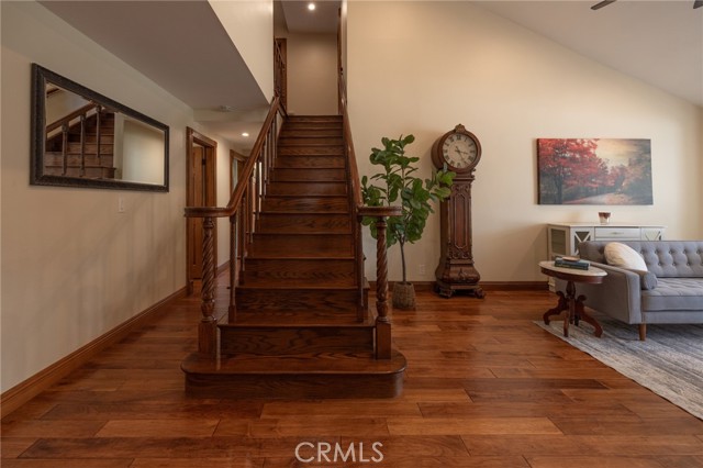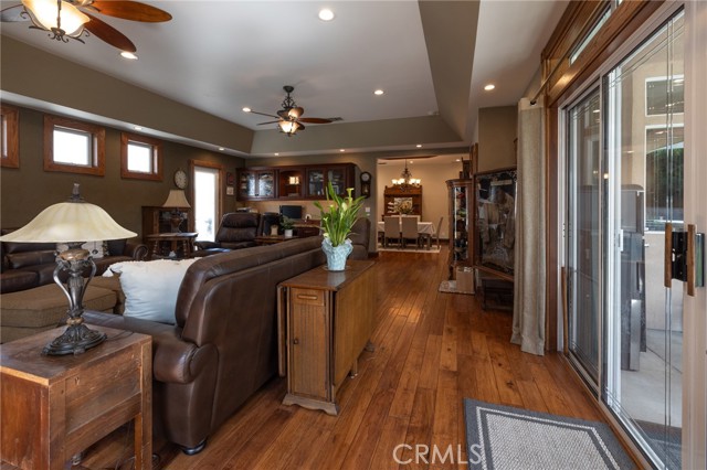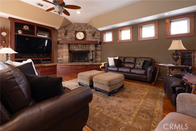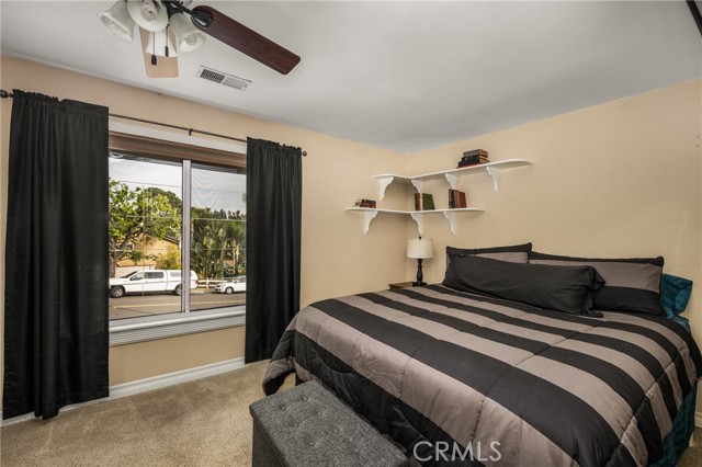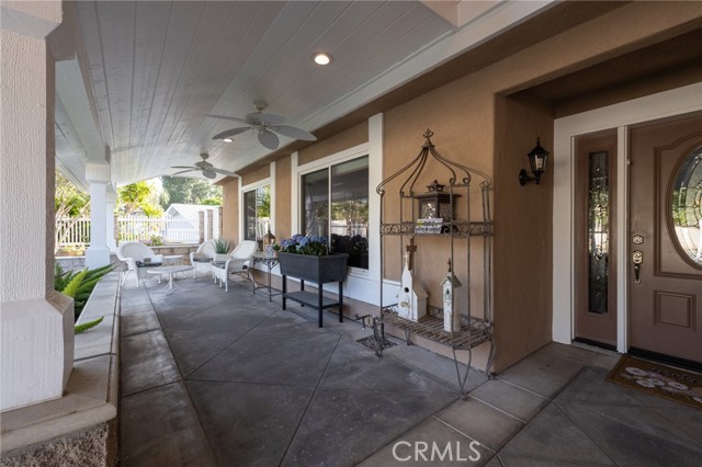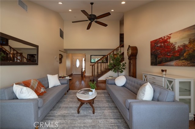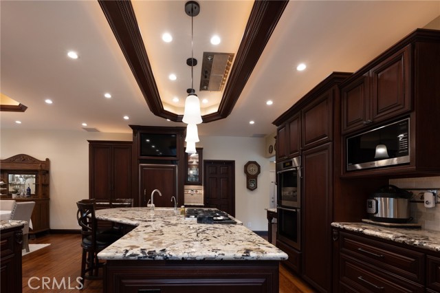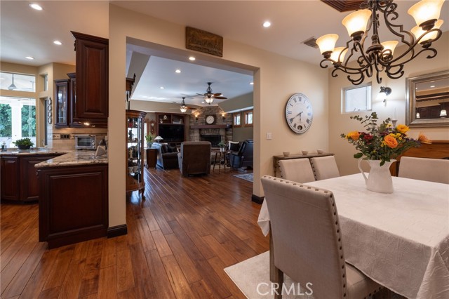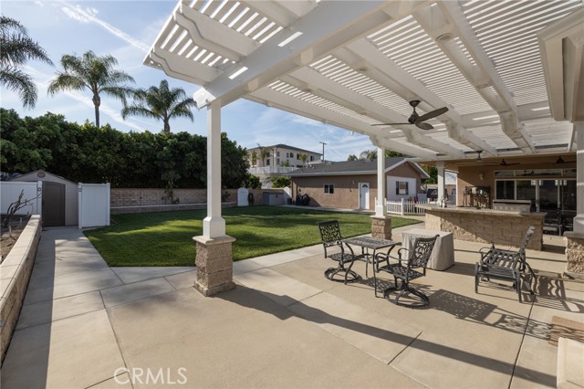 Multigenerational living in Yorba Linda! The main house lives like a single level with the primary ensuite & two bedrooms/one bath on the first floor and two beds/one bath upstairs. The detached ADU offers potential for income, and the RV driveway offers separate access as well as electricity and a dump station. This 5 bed, 3 bath home with a 2 bed 1 bath ADU and RV parking on an oversized lot with solar panels offers room for the whole family. For those warm Summer nights, the extended roof patio spans the front of the home in rain or shine, and your front lawn will always look mowed with the manicured artificial turf. The RV gate is 17 ft wide and the driveway is over 60ft long and 18ft wide from eves to wall along side the 3 car garage. Inside, views to the backyard, vaulted ceilings, and a warm wood floor greet you. The classic kitchen is beautifully appointed with top-of-the-line appliances including a Sub Zero refrigerator, Dacor 5 burner stove, Miele double ovens and warming drawer, Kitchenaide stainless dishwasher and fridge with panel doors matching the cherry cabinets with beading. A Farmhouse sink and solid maple pullout drawers including a spice rack, and two lazy Susans with many soft close drawers make this kitchen as functional as it is beautiful. The spacious island showcases Splendor granite, a vegetable sink and seating for three. The ample cabinetry also offers a coffee cabinet and Splendor backsplash diamond cut outs. An abundance of lighting tops it off. The dining area accommodates a 12 ft table and warm fireplace. Come hang out in the very spacious and warm great room with stone covered fireplace and raised hearth. Windows and glass doors to bring in lots of light and a built in desk with cabinets span one whole wall. Step out to the patio where you'll find an outdoor kitchen with concrete counters, a Blaze BBQ, 2 burner stove, sink and garbage disposal. Green grass, avocado trees, and the ADU are surrounded by Slump Stone and Concrete walls. The 920 foot ADU hosts 2 bedrooms and 1 bath with kitchen overlooking a very spacious gathering area, lots of cabinetry and its own laundry and an outside gated artificial turf yard. Step back into the primary bedroom doors from the patio in the main house to find a spacious primary bedroom with a wall of closets, walk in shower in the primary bath and 2 more first level bedrooms and the hall bath hosts the tub. Upstairs -two large bedrooms and a full bath. Shopping, theatre and great schools!