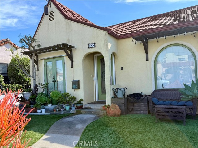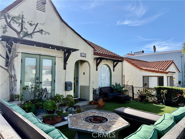Blocks from the beach and perched on the highest lot on Miramar Dr, this charming 1930s Spanish home is a rare coastal opportunity—ideal for a builder, investor, or end user seeking ocean views and timeless character. Currently move-in ready, the property captures stunning sunset views from its thoughtfully designed outdoor living spaces. Beyond the gated entry, the professionally turfed, low-maintenance front yard welcomes you with a private outdoor retreat. Enjoy evenings gathered around the gas fire pit with custom-built seating, soaking in ocean vistas with your favorite glass of wine. The front yard offers ample space for pets, and effortless entertaining. Inside, the home beautifully preserves its historic charm, featuring original coved ceilings and vintage bathroom tile, seamlessly complemented by tasteful modern upgrades. This immaculate 3-bedroom, 2-bath residence includes energy-efficient windows, French doors, hardwood floors, central heating and A/C, updated plumbing, and a whole-home water filtration system. The galley kitchen is appointed with granite countertops, a dishwasher, and updated appliances. The spacious walk-in steam shower adds a luxurious touch. Approximately 200 square feet of unregistered upper-level bonus space offers a versatile loft/dormer area with peek-a boo ocean views—comfortably arranged with twin beds, perfect for guests or a creative retreat. Improvements include permitted windows, Berber carpet, updated lighting, ventilation, and installed hookups for an outdoor Jacuzzi. Complete the beach lifestyle with a separate outdoor shower and lush landscaping featuring 50-foot bamboo trees and native plants, providing privacy, shade, and an inviting coastal ambiance.