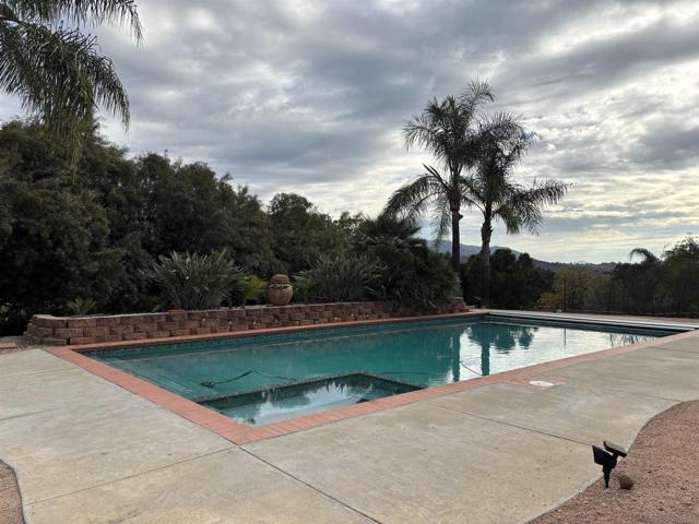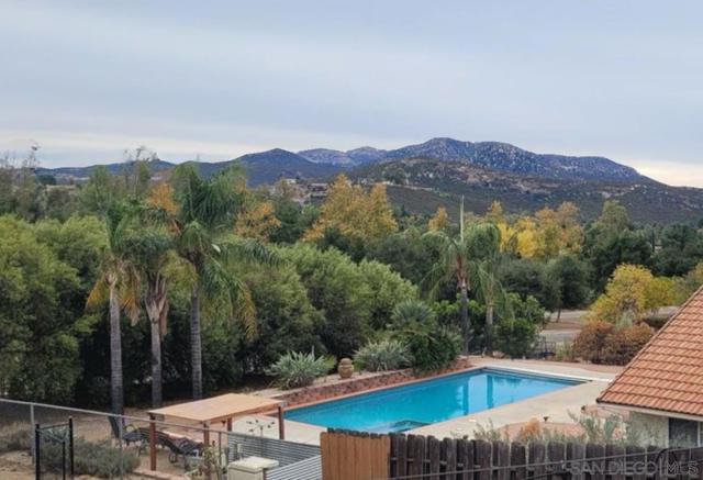 Welcome to this beautiful spacious, single level home in San Diego country estates. Come & see it, to appreciate all it has to offer. Picture window in living room brings nature closer. Wood stove in family room is wonderful feature & yes there is also a dual-sided fireplace in the living room and sitting area as well. The kitchen opens to the family room makes entertaining with family & friends cozy. In ground pool in the backyard is the perfect place to cool down on warm days, have a cook out, relax & enjoy the views.. 2 sets of solar 1st set is paid off (installed by previous seller) & 2nd installed in 12/2022 with interest rate of 1.49%. Home has ceiling fans, and recessed lighting. Kitchen with granite counters, island & stainless steel appliances. Full bathroom by the in ground pool makes it easy to clean up before coming back in the home. All appliances including washer/dryer conveys.. HOA covers pools, golf course, parks & tennis courts per seller.. Seller did the following: • May 2021: Flooring in all bedrooms was upgraded from carpet to tile. • December 2022: Installed additional solar panels. • August 2023: Installed new cabinets and a new toilet in the master bathroom. • May 2024: Installed a new water heater. • Installed a new dishwasher and microwave oven. • Installed new faucets in the master bathroom and bathroom 1. • Installed new Vinyl Fence on one side of the property and redid part of the chain link fence on the other side of the property. • Installed new window blinds for 2 windows in living room