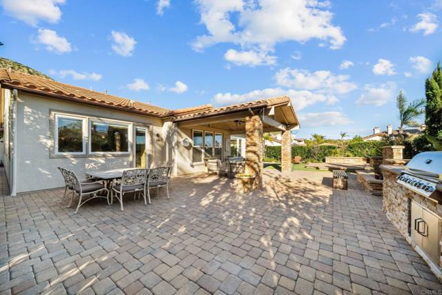 Welcome to The Renaissance, a 24-hour guard-gated community in Porter Ranch. Perched on a corner lot atop the hills, this single-story home offers peek-a-boo valley views and privacy with no neighbors directly behind it. Inside, 10-foot ceilings and engineered wood floors flow throughout, complemented by a desirable split-bedroom layout with a private primary suite. A separate wing with two additional bedrooms provides flexibility for guests, multigenerational living, or a dedicated home office. Designed for both functionality and entertaining, the backyard features a covered patio, built-in BBQ and fire pit, mature landscaping, and a spacious side yard. Located within the highly rated Porter Ranch Community School district and minutes to parks, scenic trails, and the shops and restaurants at The Vineyards at Porter Ranch, this rare single-story home offers a seamless blend of everyday convenience and refined comfort.